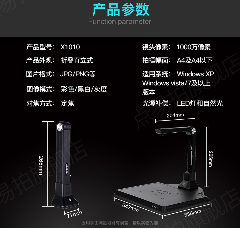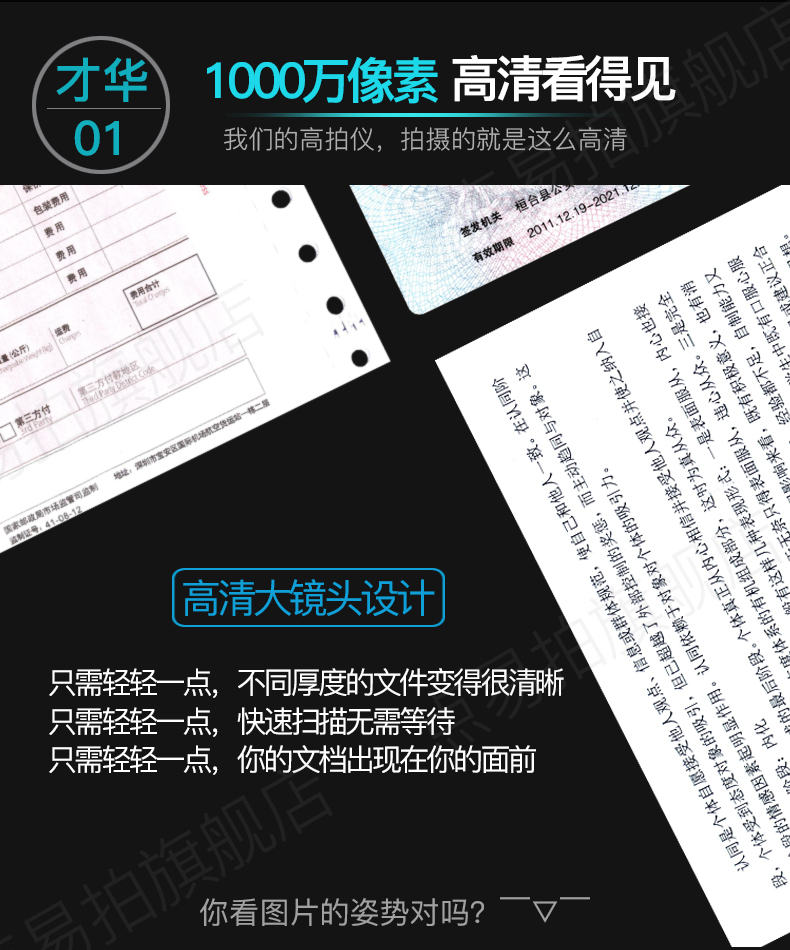 办公好帮手 点易拍 X1010高拍仪扫描仪