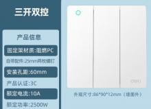 得力 LX906-08B 三开双控开关 CPP袋装(珍珠白)(个)