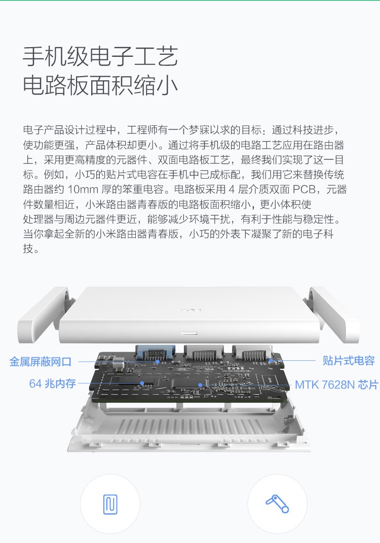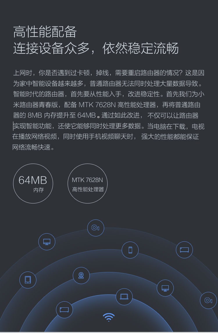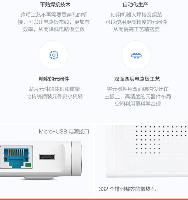 | 特性 | 16MB NOR Flash,64MB DDR2,1个USB电源输入接口,1个恢复出厂设置按键 |