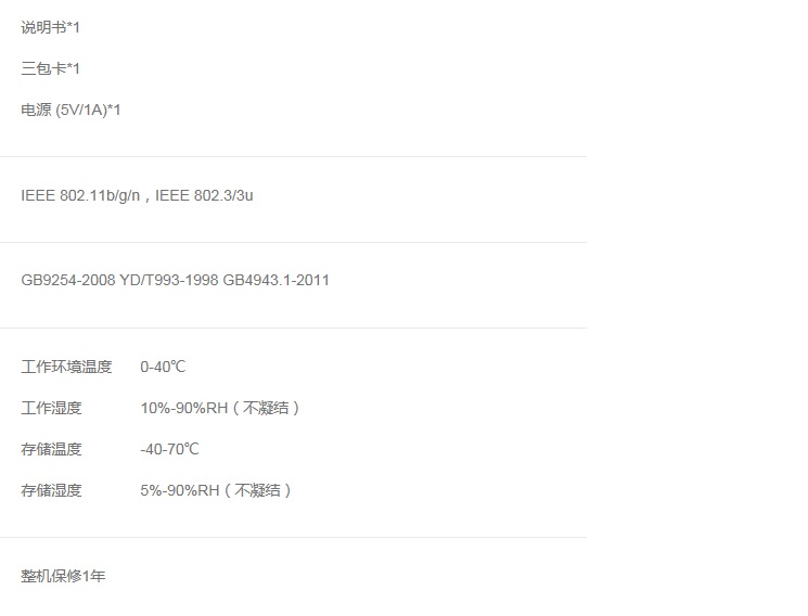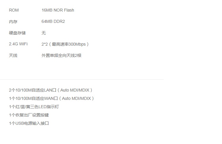 | Lan口数量(无线路由) | 2个10/100M自适应LAN口(Auto MDI/MDIX) |