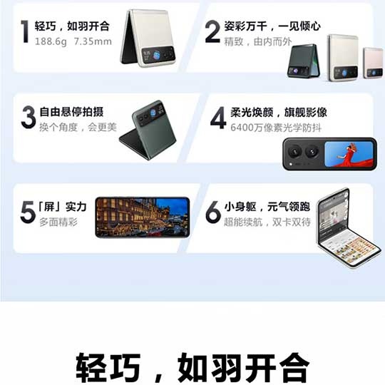 掌心玲珑 自由悬停 旗舰影像 超长续航 双卡双待双5G 折叠屏手机