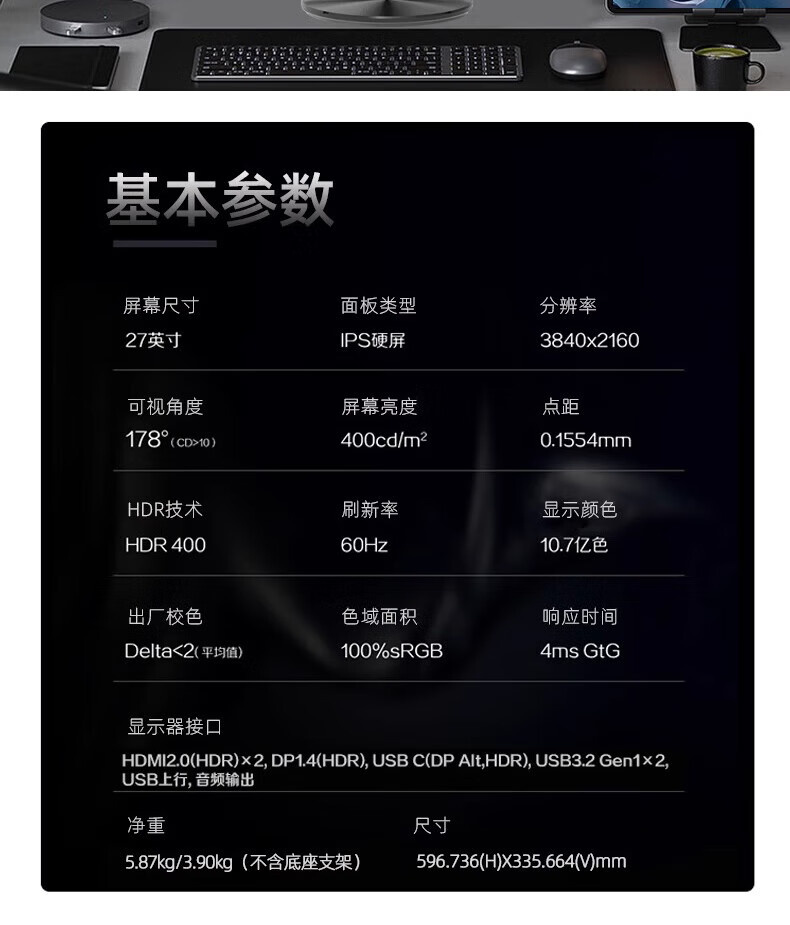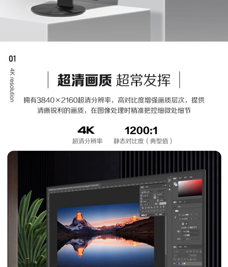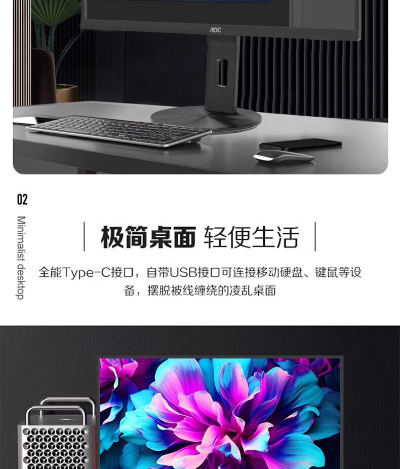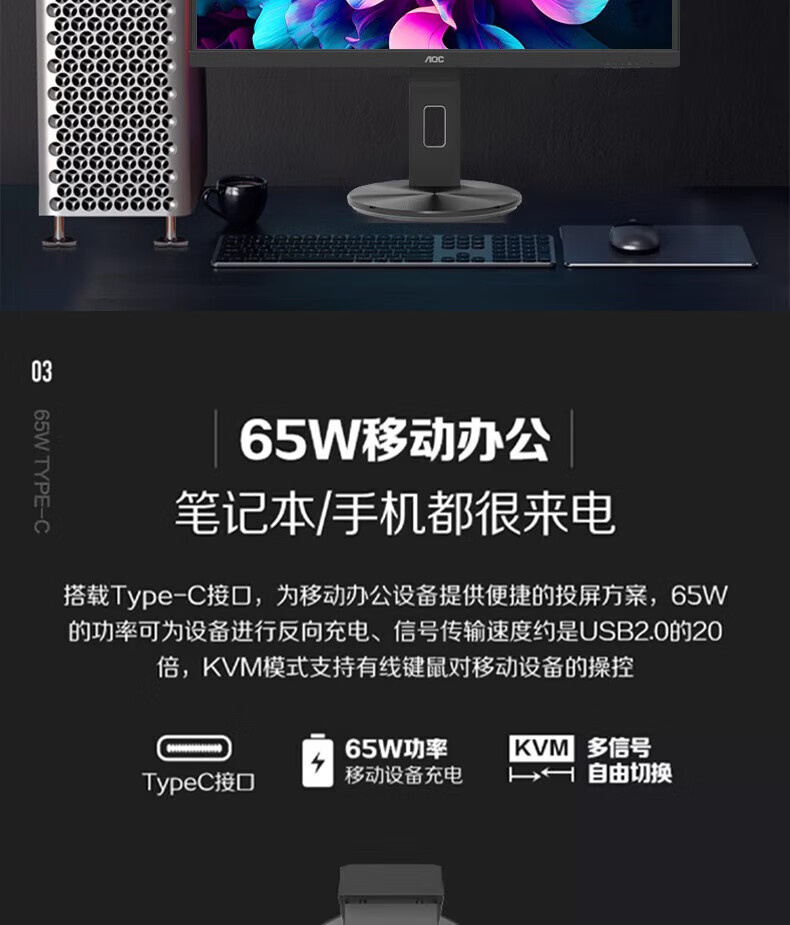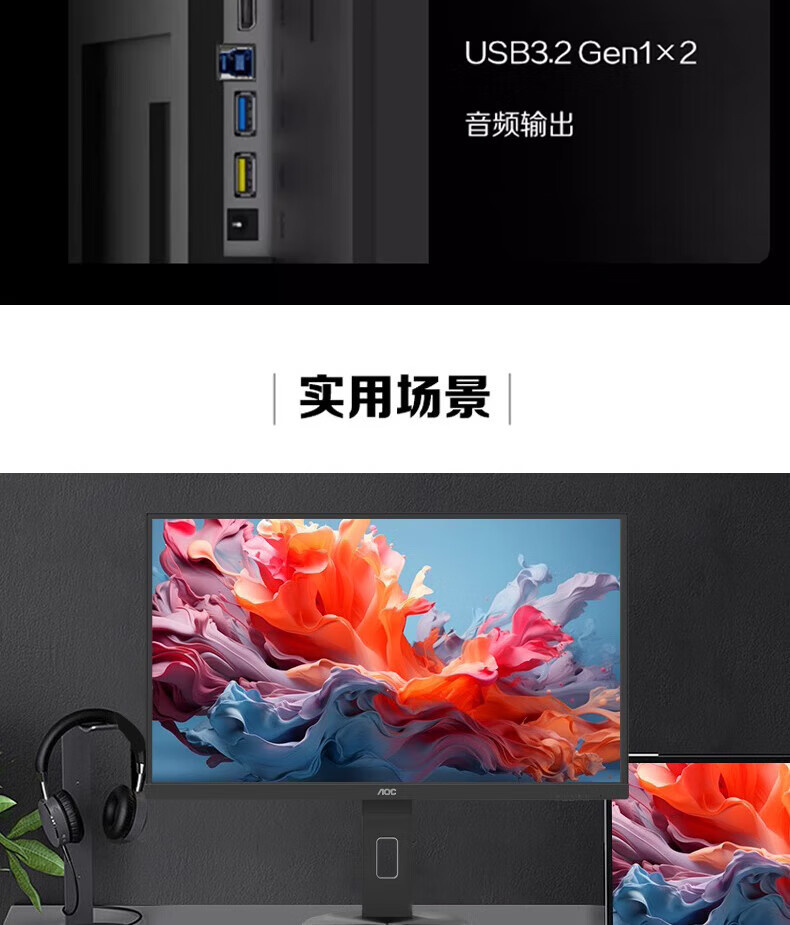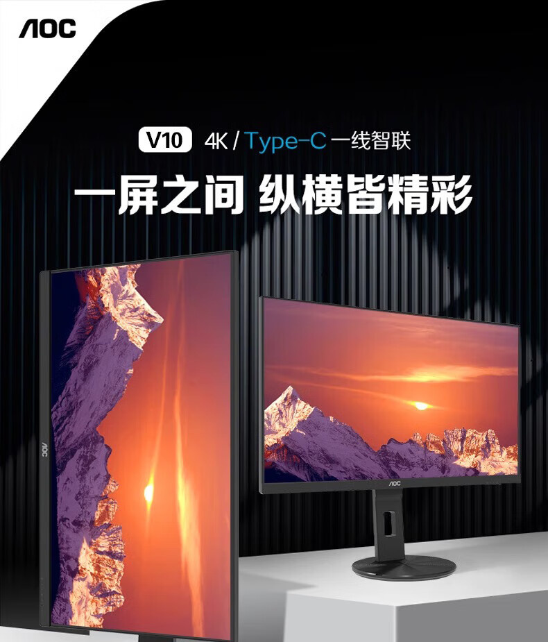 AOC U27V10R 27寸 直面 IPS屏 4K升降旋转type-c 65W HDR400 液晶显示器