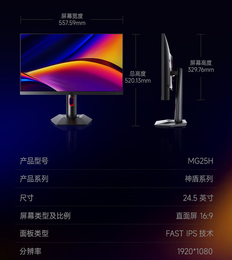 HKC MG25H 25寸IPS 1k+360HZ+升降旋转 新品