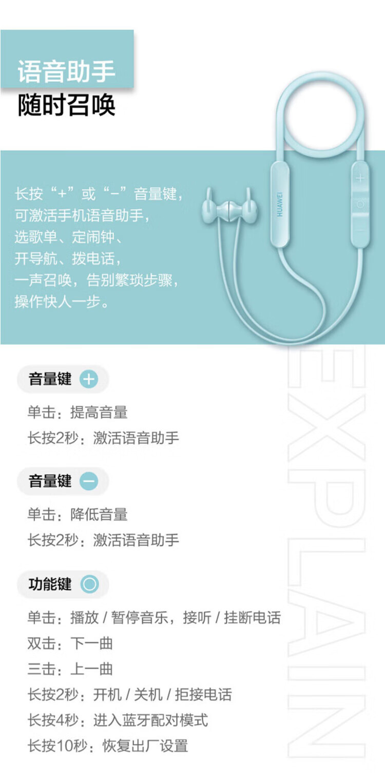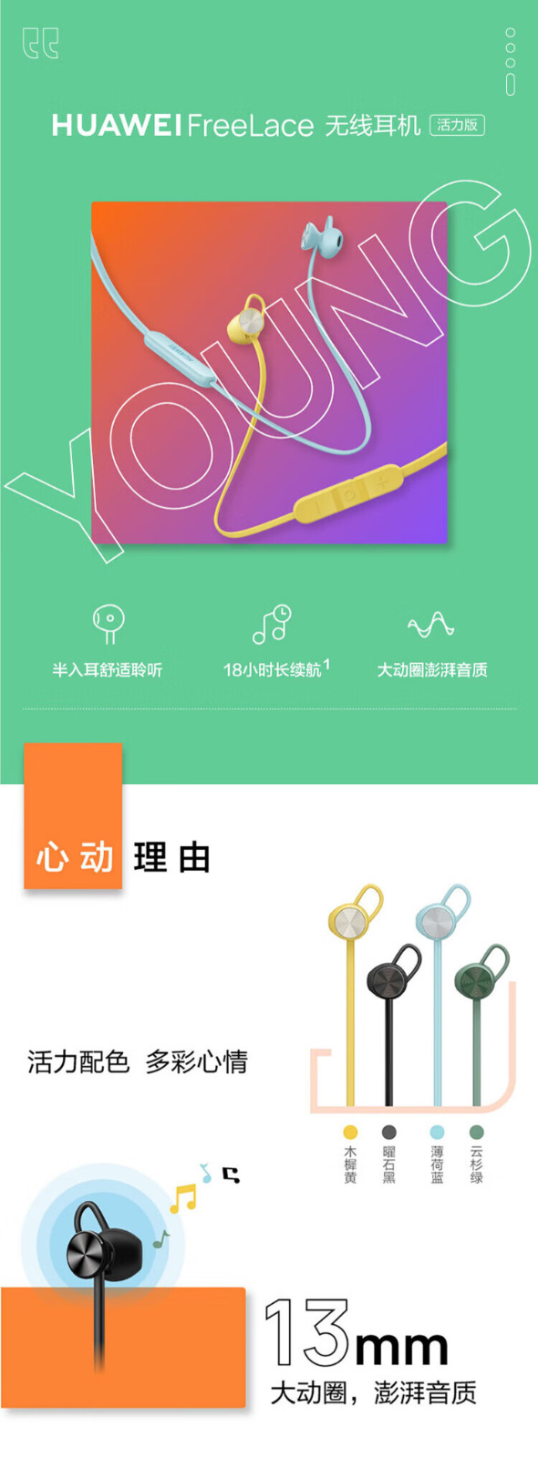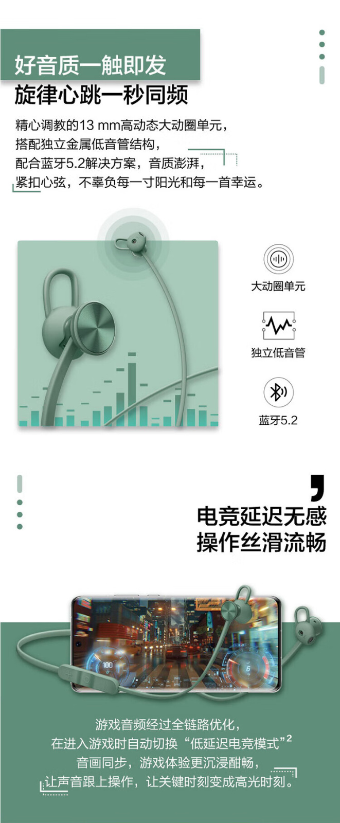 华为 FreeLace活力版 无线蓝牙耳机 云杉绿