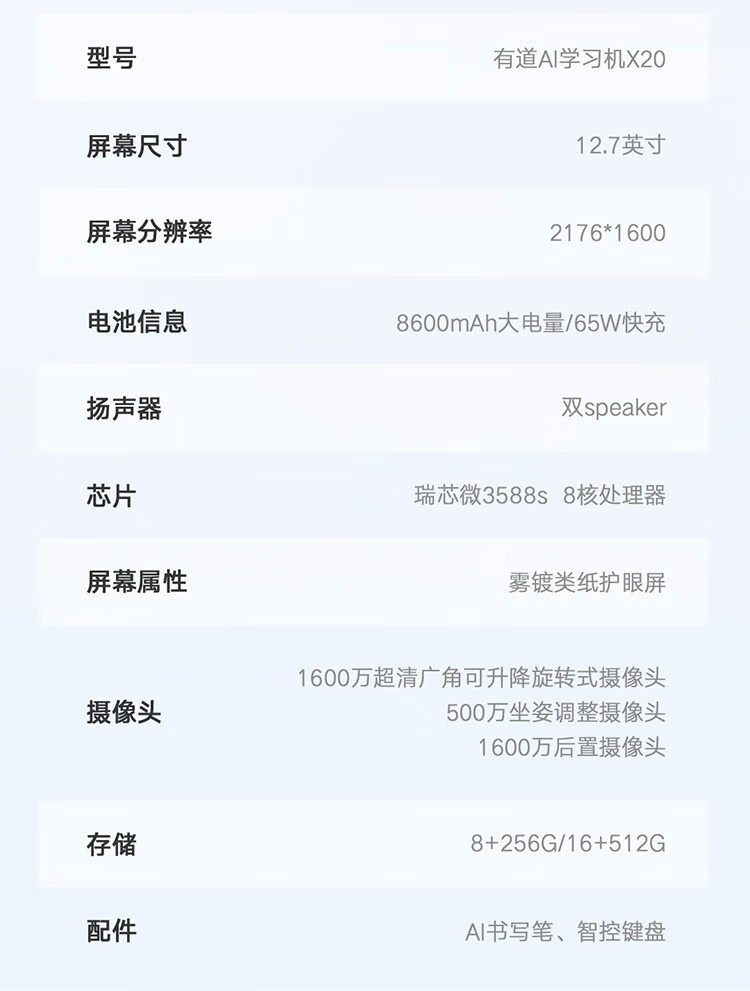 有道AI学习机X20 8G+256G 三合一AI学习平板