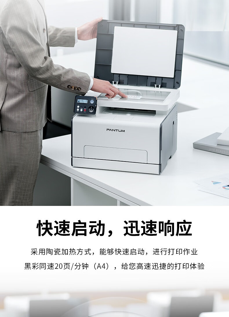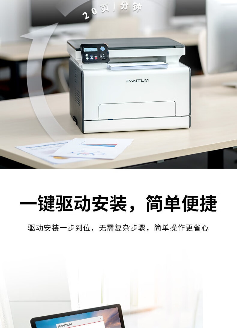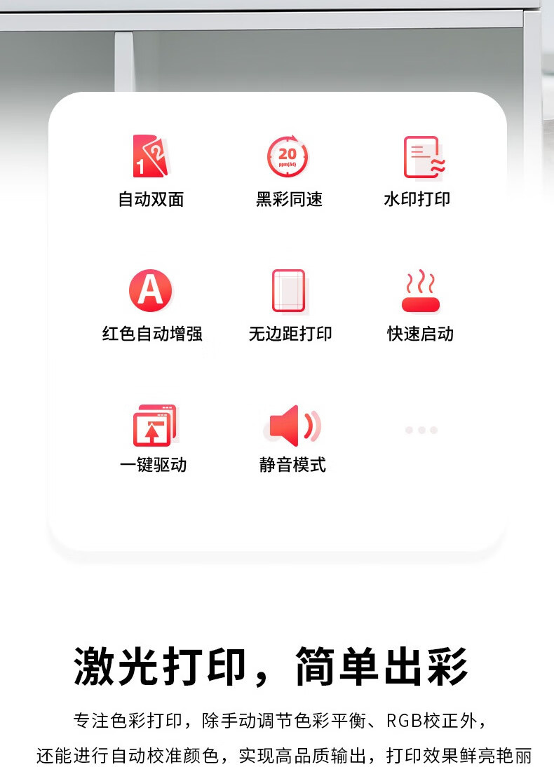 A4彩色激光打印复印扫描一体机,黑彩同速,20ppm,自动双面,支持有线无线网络打印