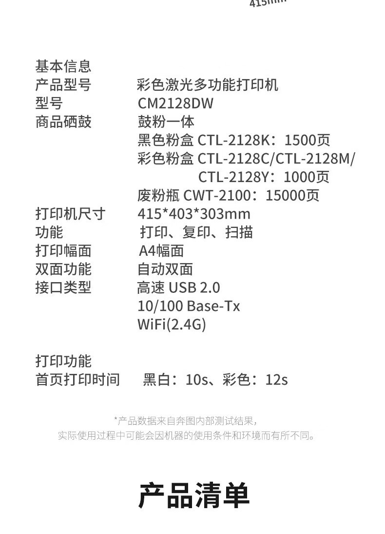 奔图 CM2128DW 彩色双面激光一体机