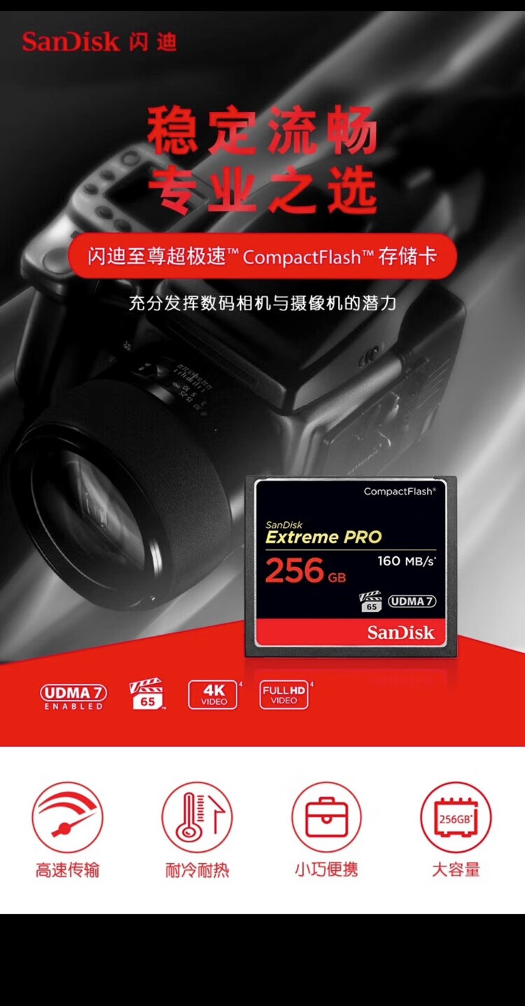 闪迪 CF1067X 160M UDMA7 4K单反相机 存储卡 64GB