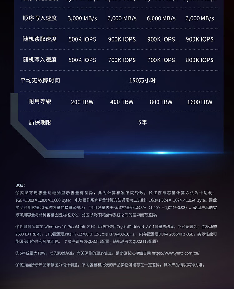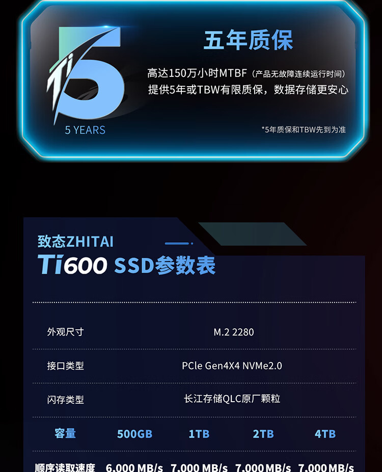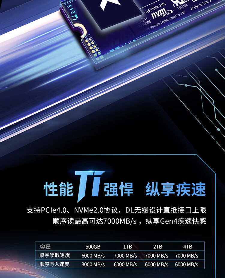 (NVME-4.0,读/写:7000/6000,TBW:1600)