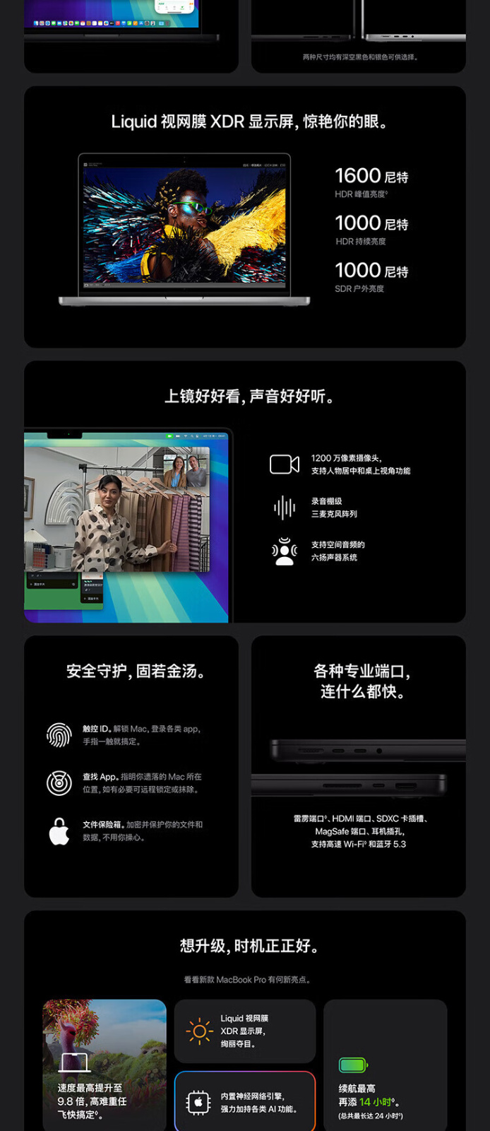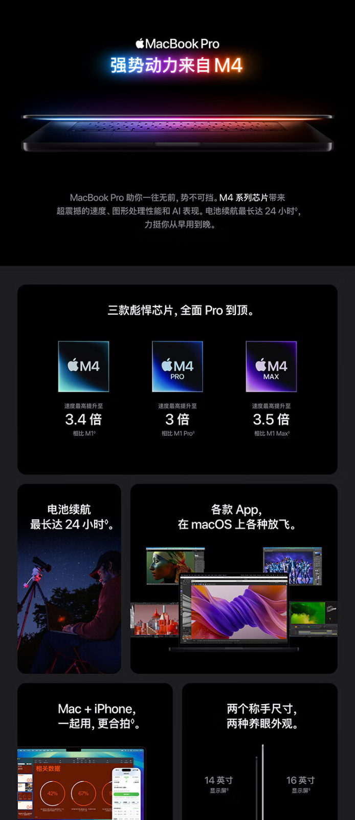 MacBook Pro 24款 M4Max(14+32核)/36G/1T/14寸/银色/MX2G3CH/A