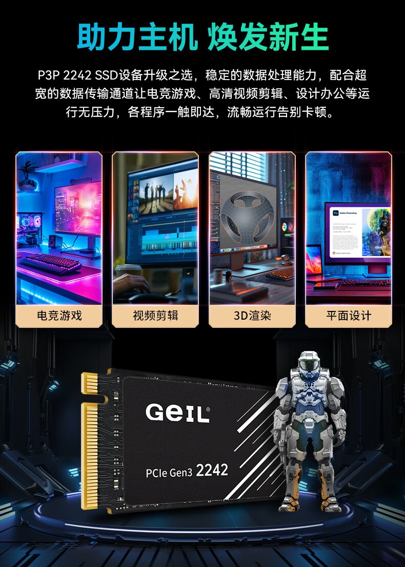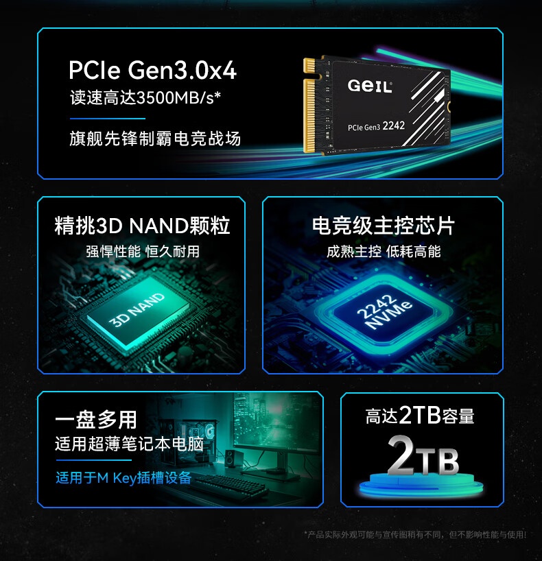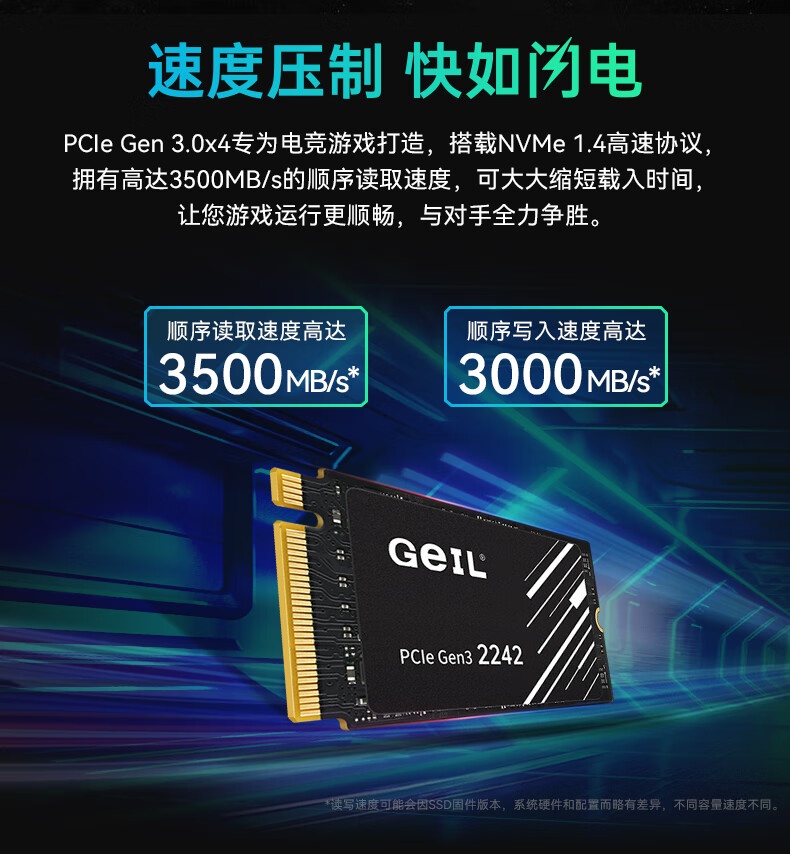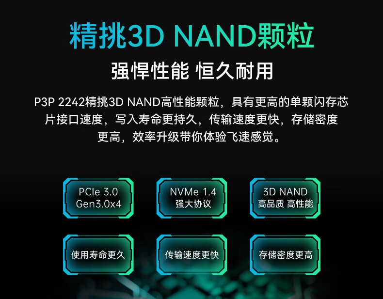 SSD固态硬盘M.2接口PCIe 3.0(NVMe协议)2242短板
