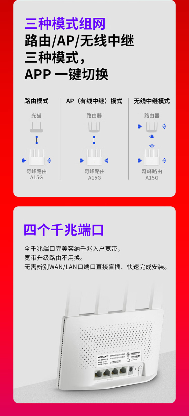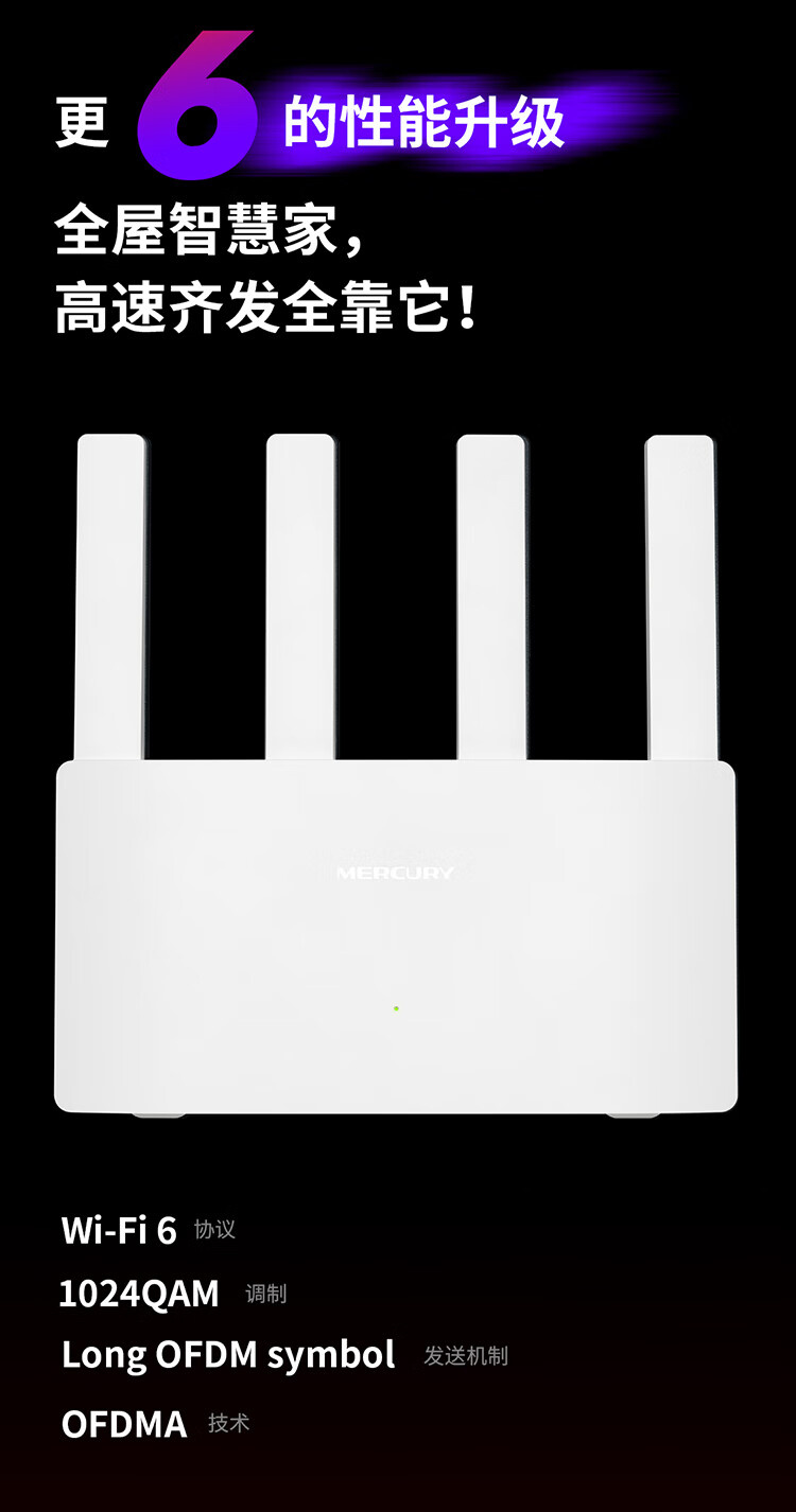 水星 奇峰AX1500 WiFi6双千兆无线路由器 A15G