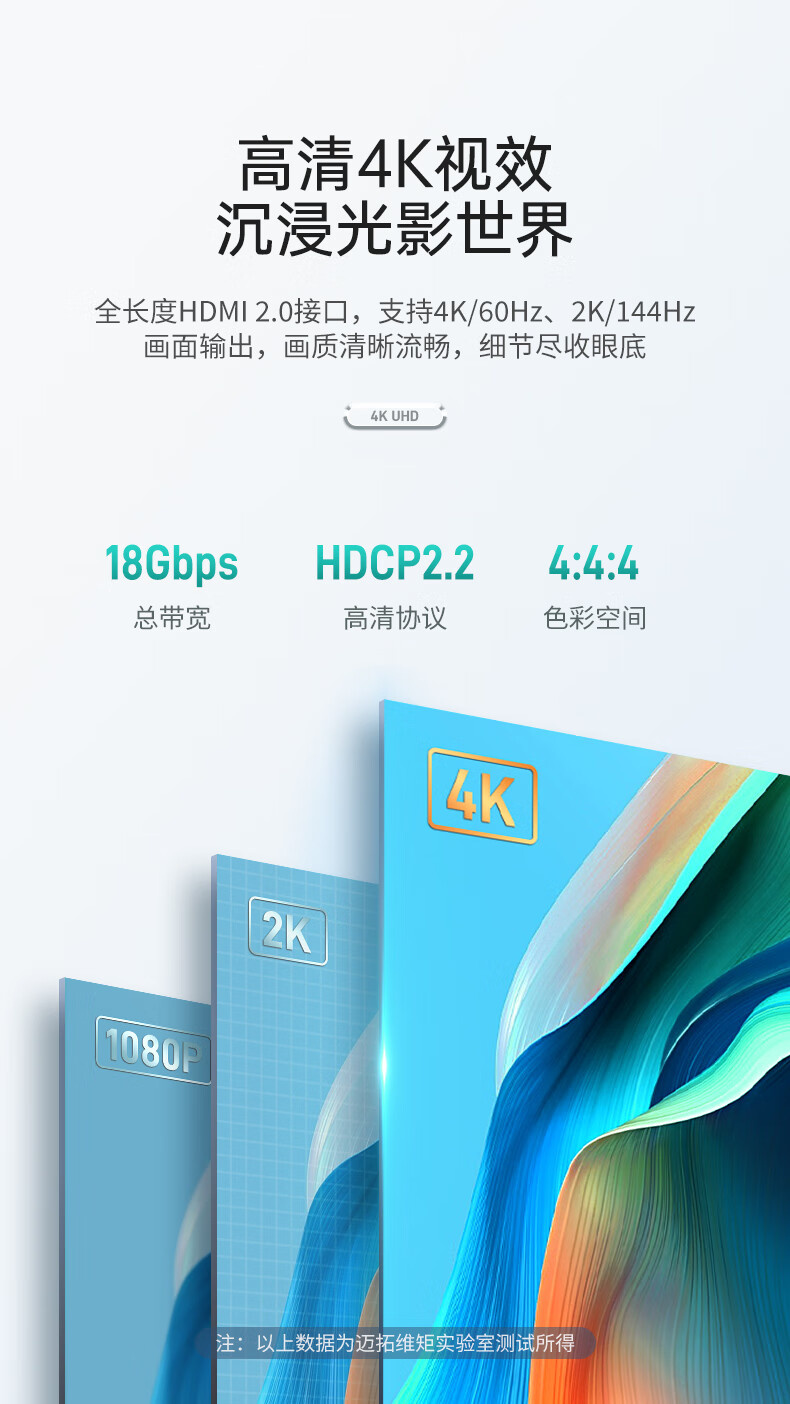 2.0版4K60Hz发烧级高清线3D电脑机顶盒连接电视投影仪工程装修加延长连接线