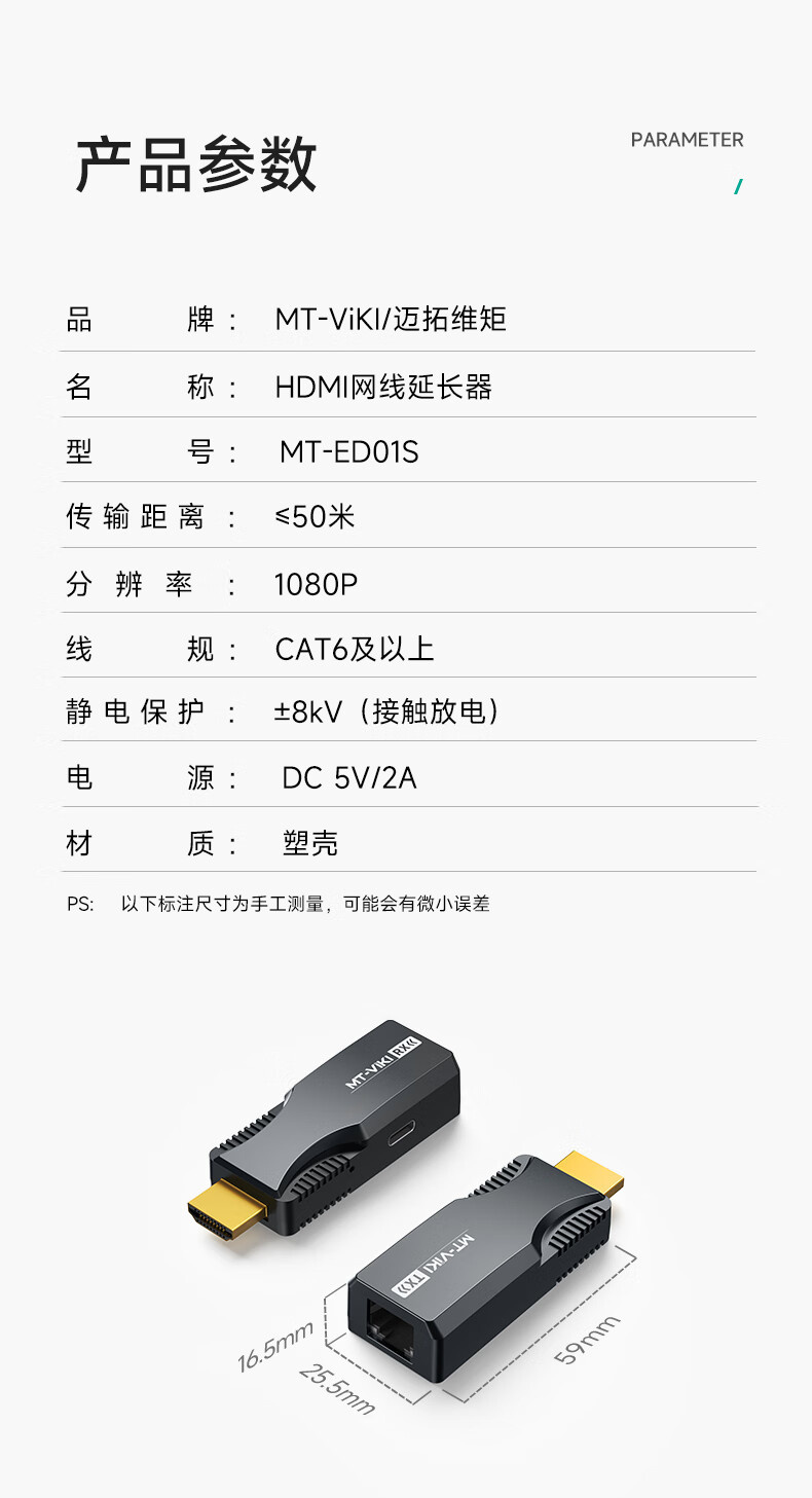 迈拓 MT-ED01S HDMI网线延长器 50米