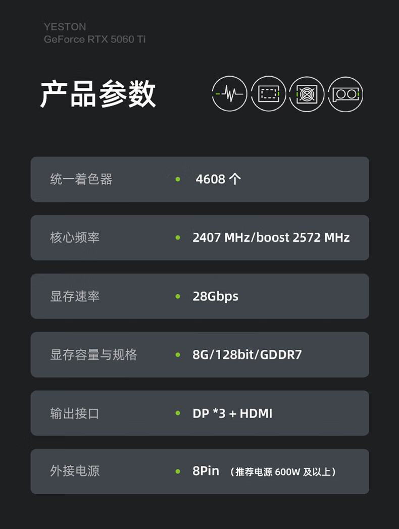 盈通 RTX5060TI-8G D7 大地之神 双扇