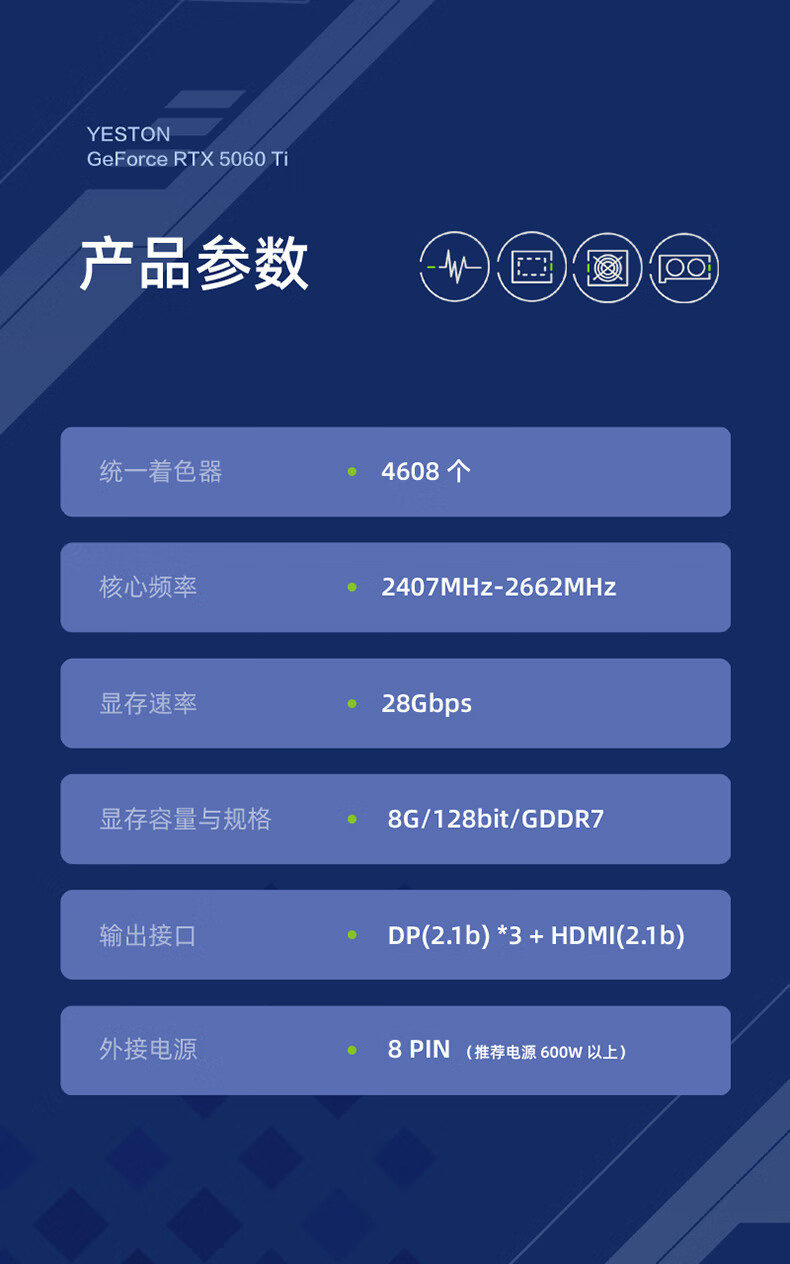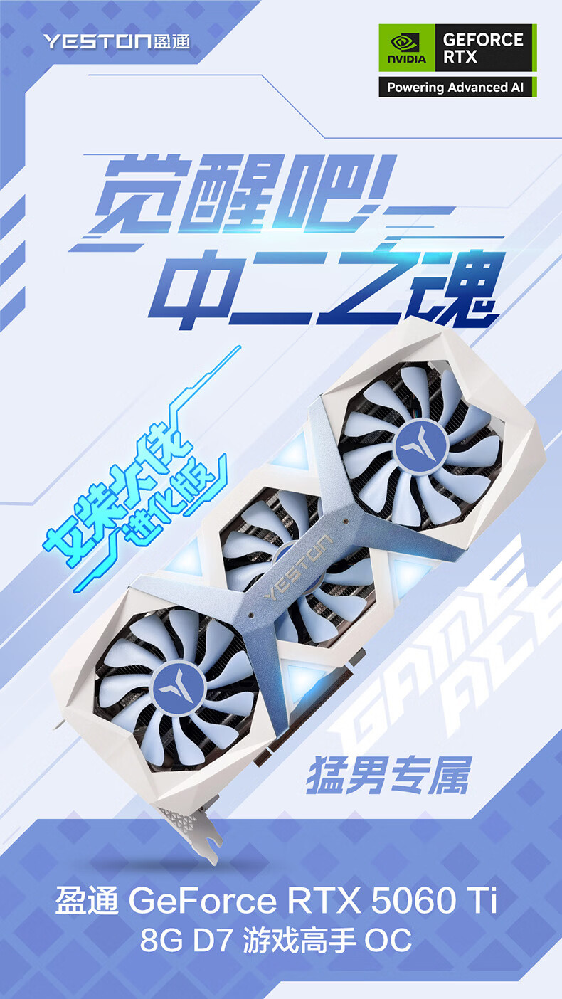盈通 RTX5060TI-8G D7 游戏高手 白色三扇