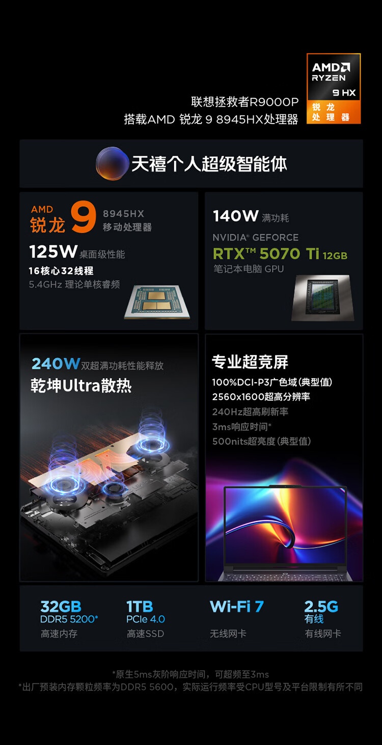 拯救者R9000P-2025(R9-8945HX/32G/1T/RTX5070Ti-12G/2.5K/16寸/黑