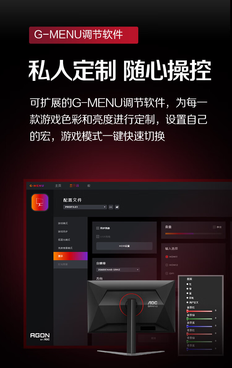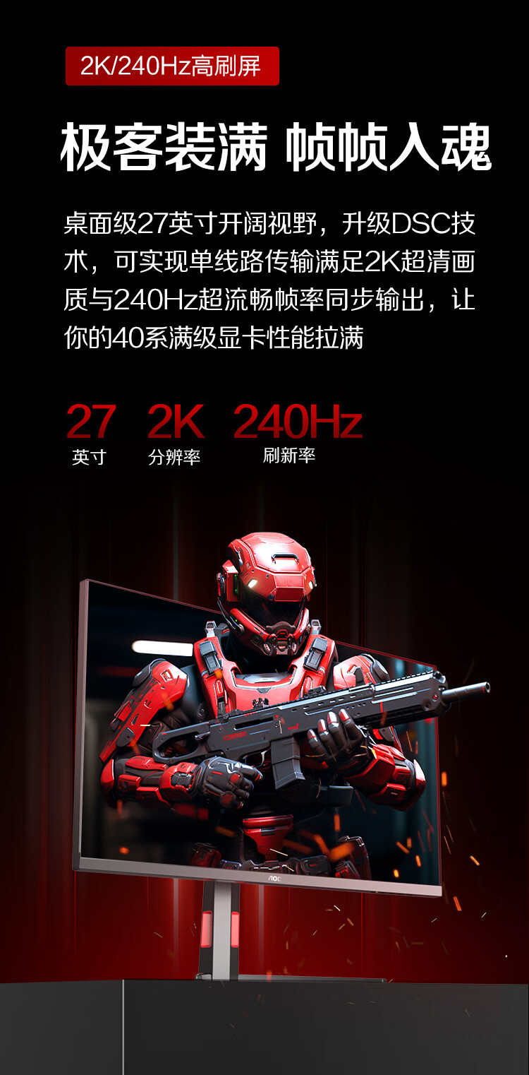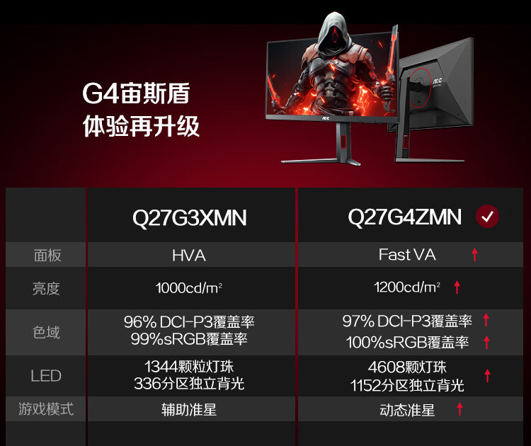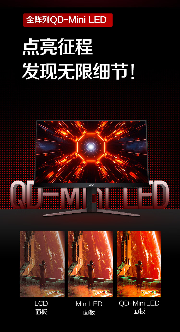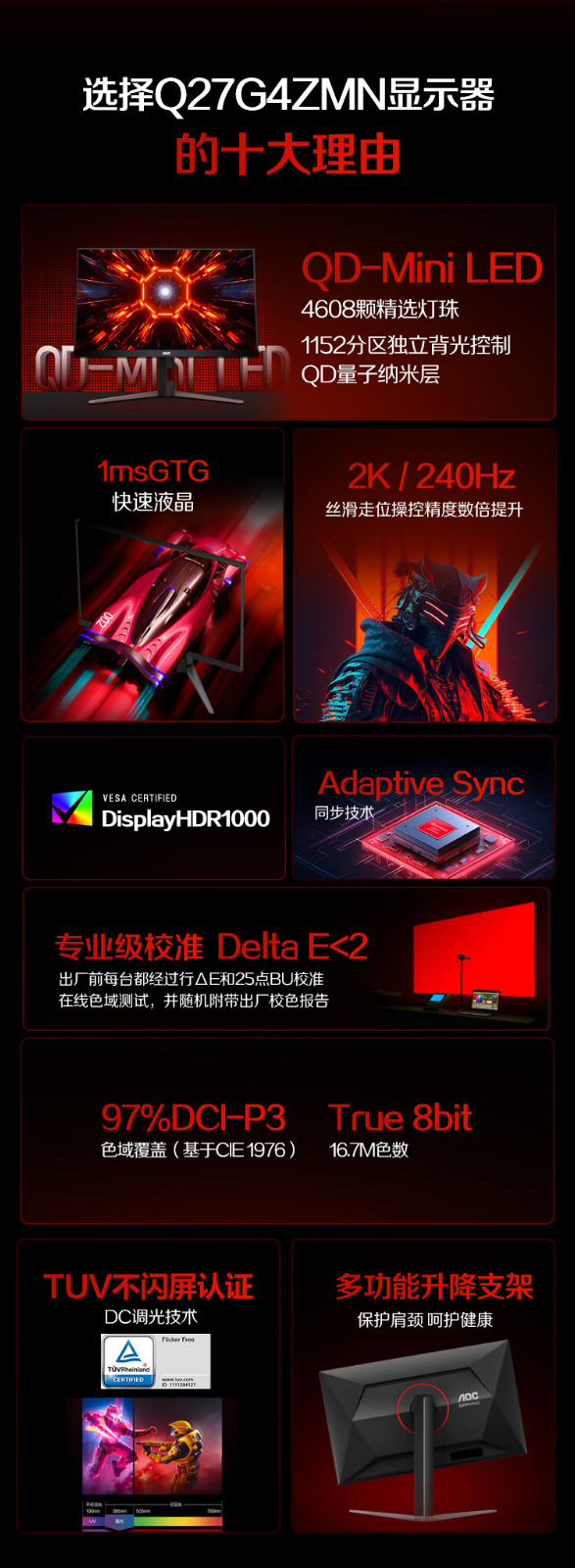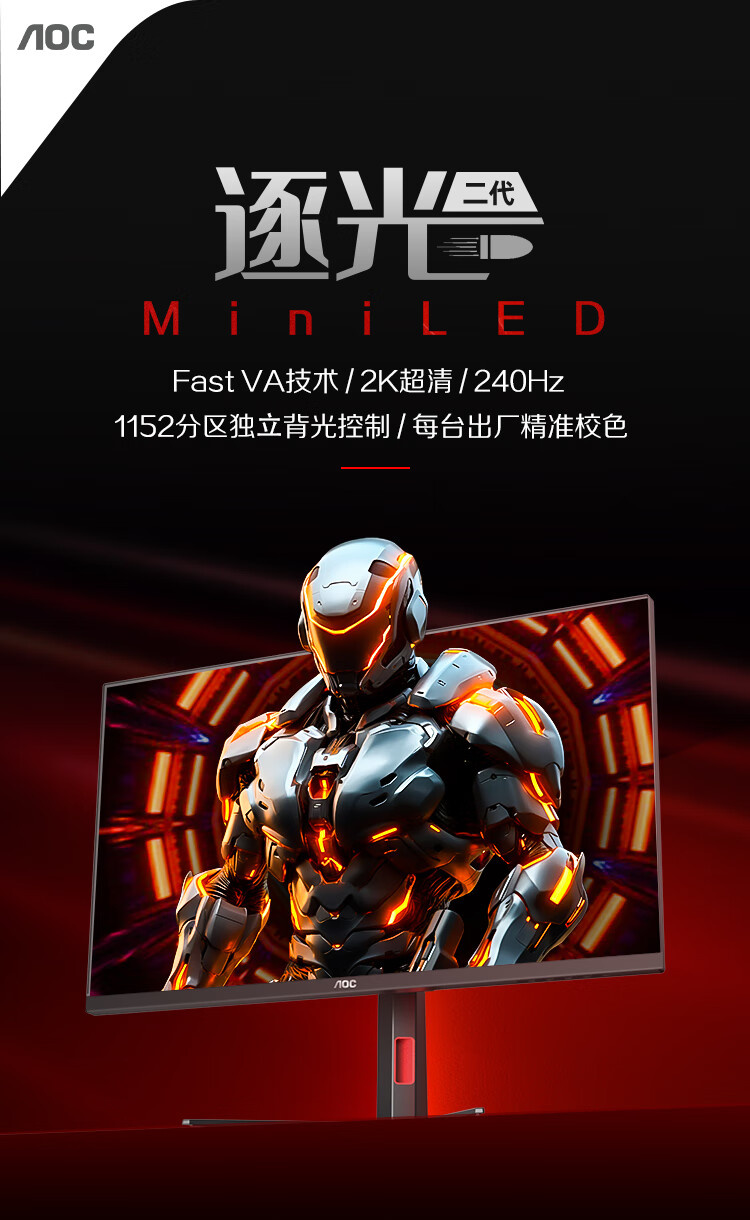AOC Q27G4ZMN 27英寸 MiniLed 2K 240HZ 1152分区 电脑显示屏