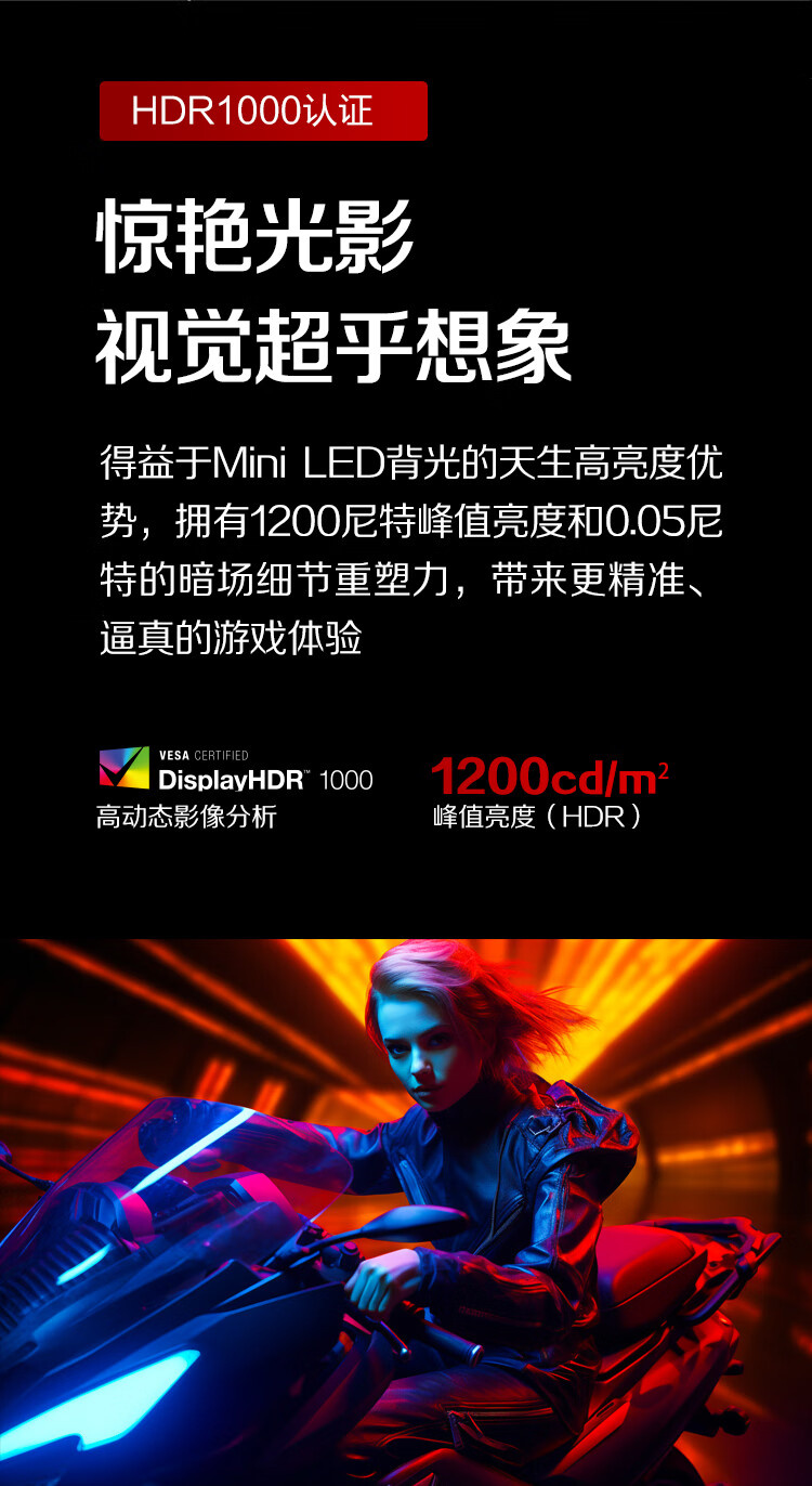 QD-MiniLED 量子点2K显示器1ms电竞游戏快速液晶电脑显示屏HDR升降旋转