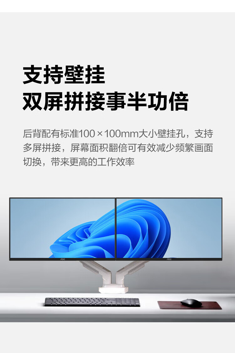 AOC U27B30 IPS 27英寸 不带升降旋转 4K 显示器