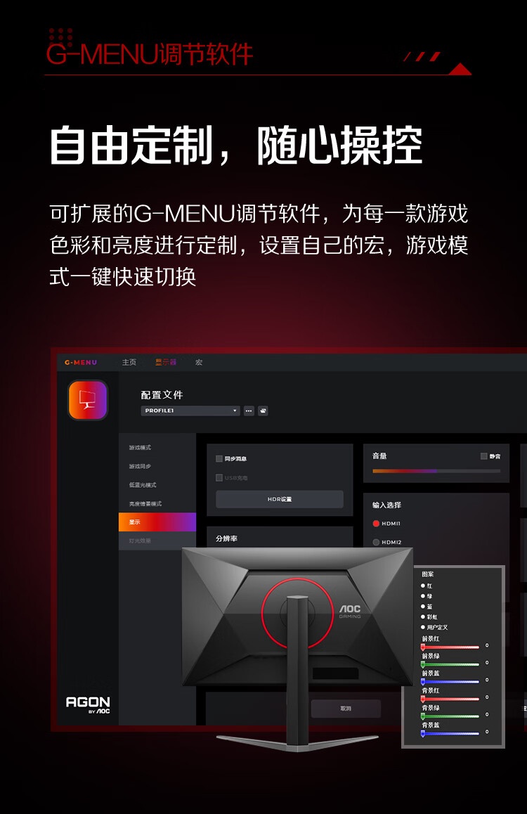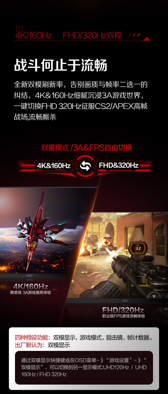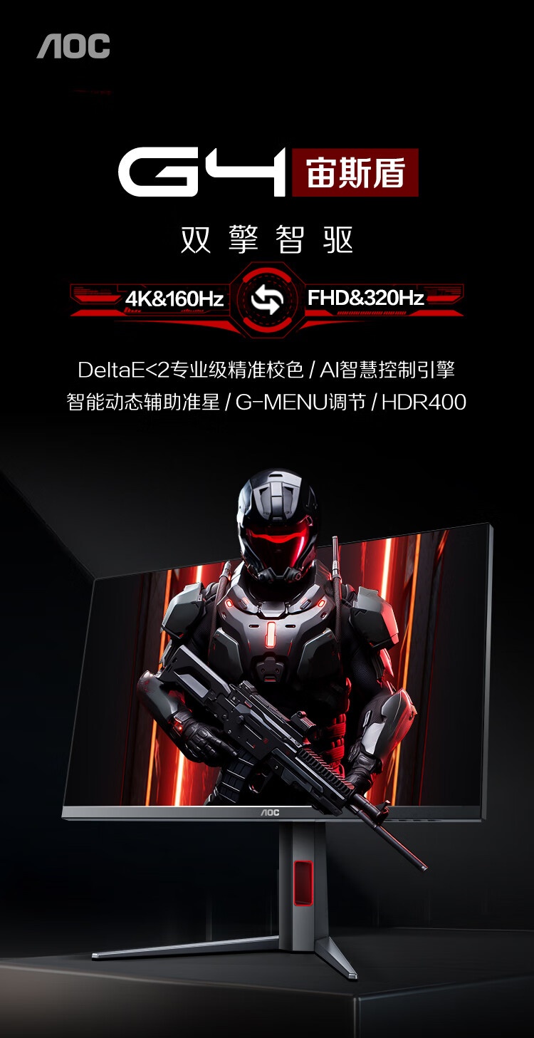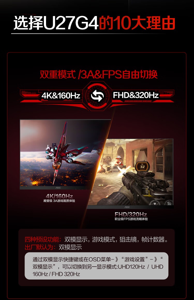 AOC U27G4 IPS快速液 27英寸 双模 4K 160ZH 1K 320HZ