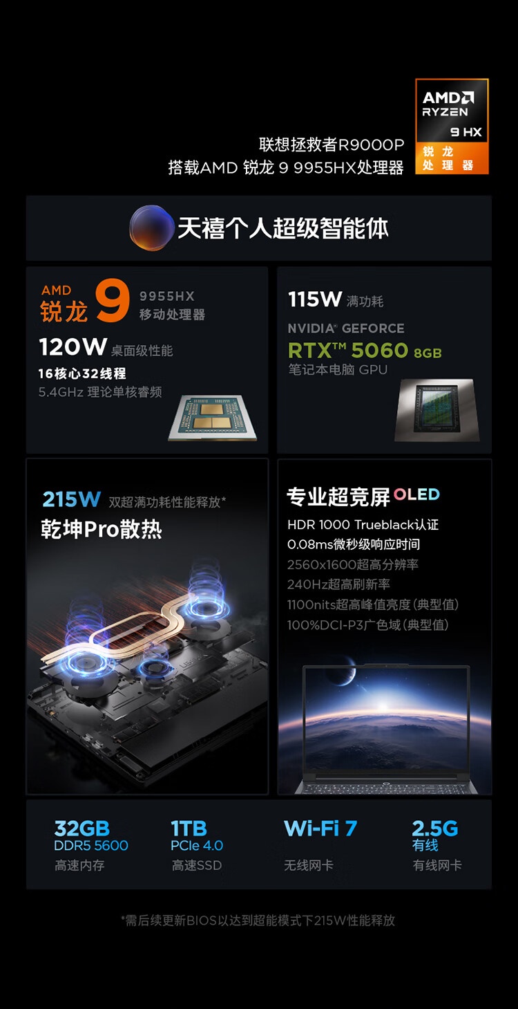 拯救者R9000P-2025(R9-9955HX/32G/1T/RTX5080-16G/2.5K/AI元启/黑)