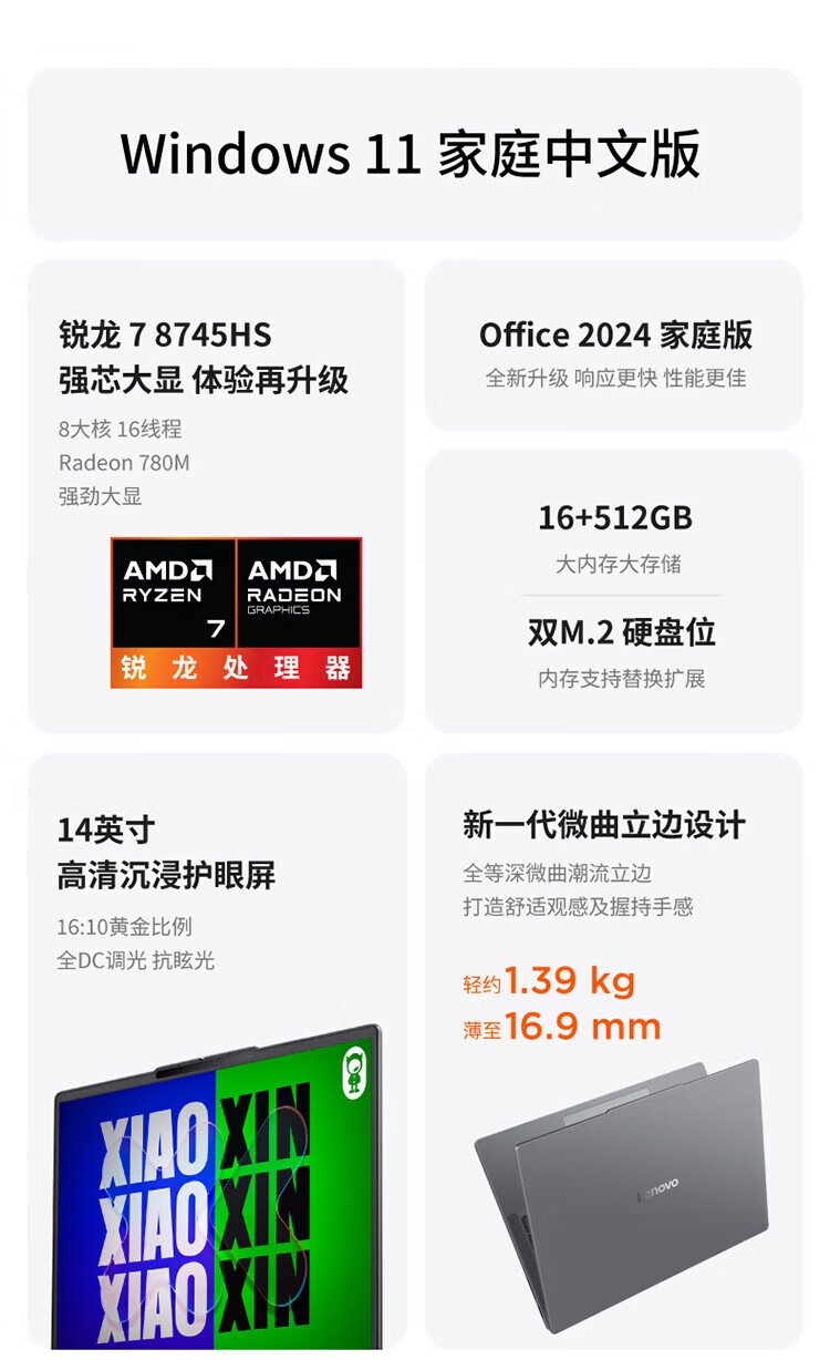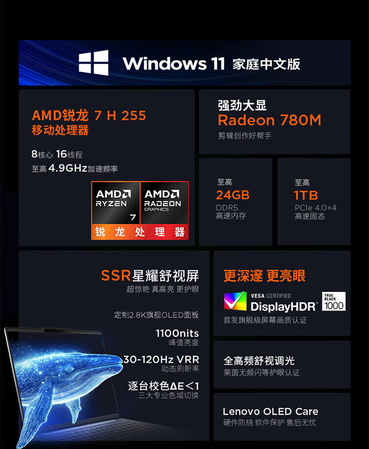 小新Pro14C(R7-255H/24G/1T/w11 2.8K 2025)