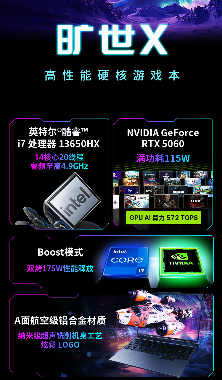 机械革命 旷世X(I7-14650HX/16G/1T/RTX5060星际灰)