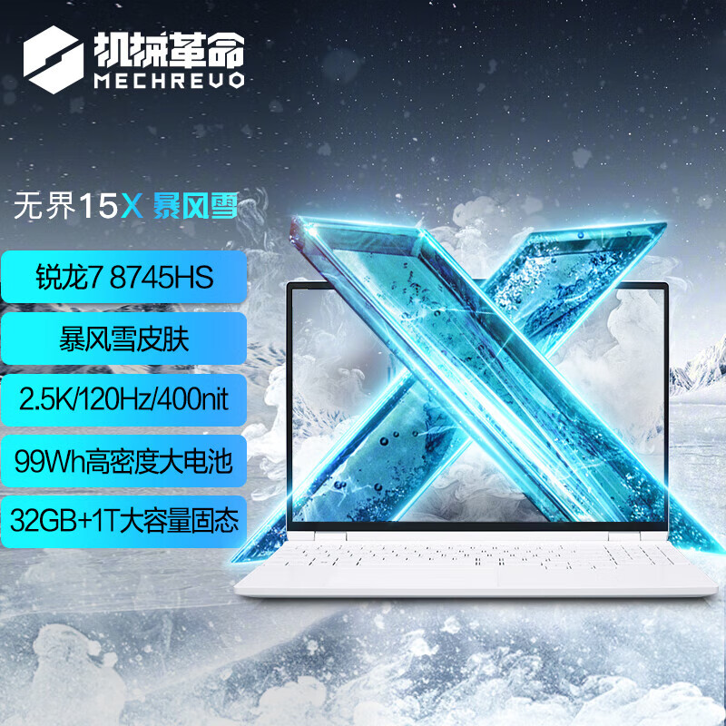 机械革命 无界15X(R7-8745HS/32G/1T/100% 2.5K 120Hz 99Wh/白/长续航)