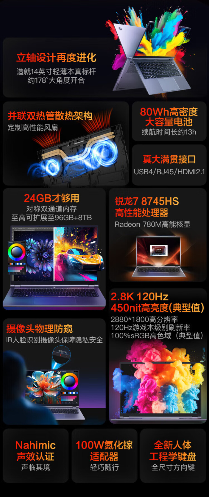 机械革命 无界14X(R7-8745HS/24G/1T/100% 2.8K/120Hz/灰)笔记本