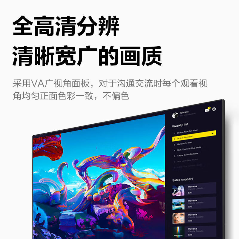 100Hz窄边框直面屏 HDMI+VGA接口 可壁挂