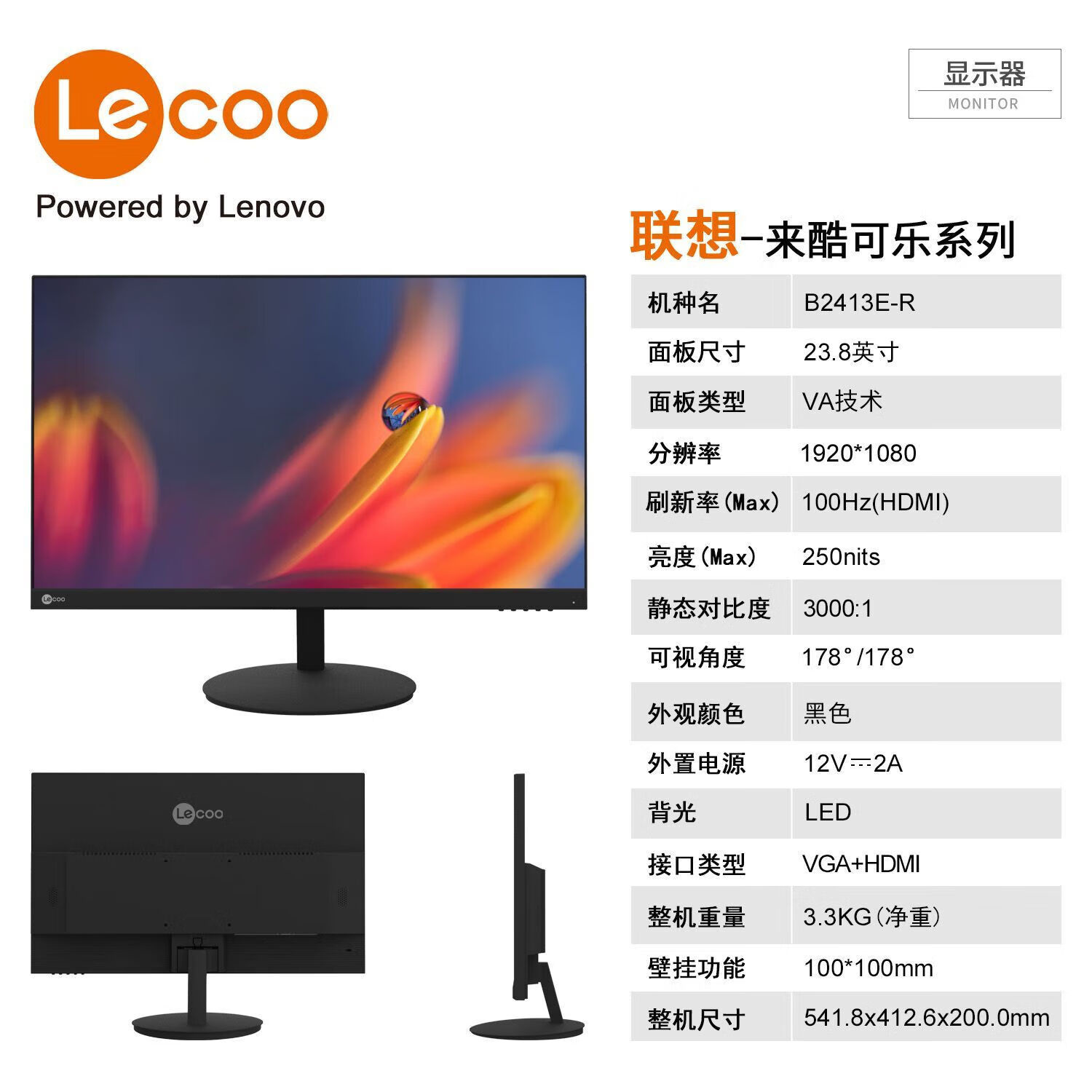 联想 B2413E-R 23.8寸电脑显示器