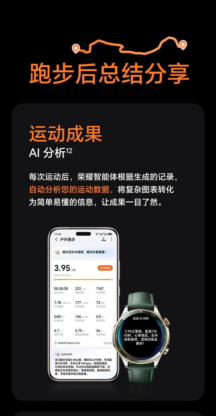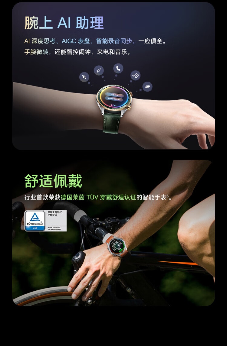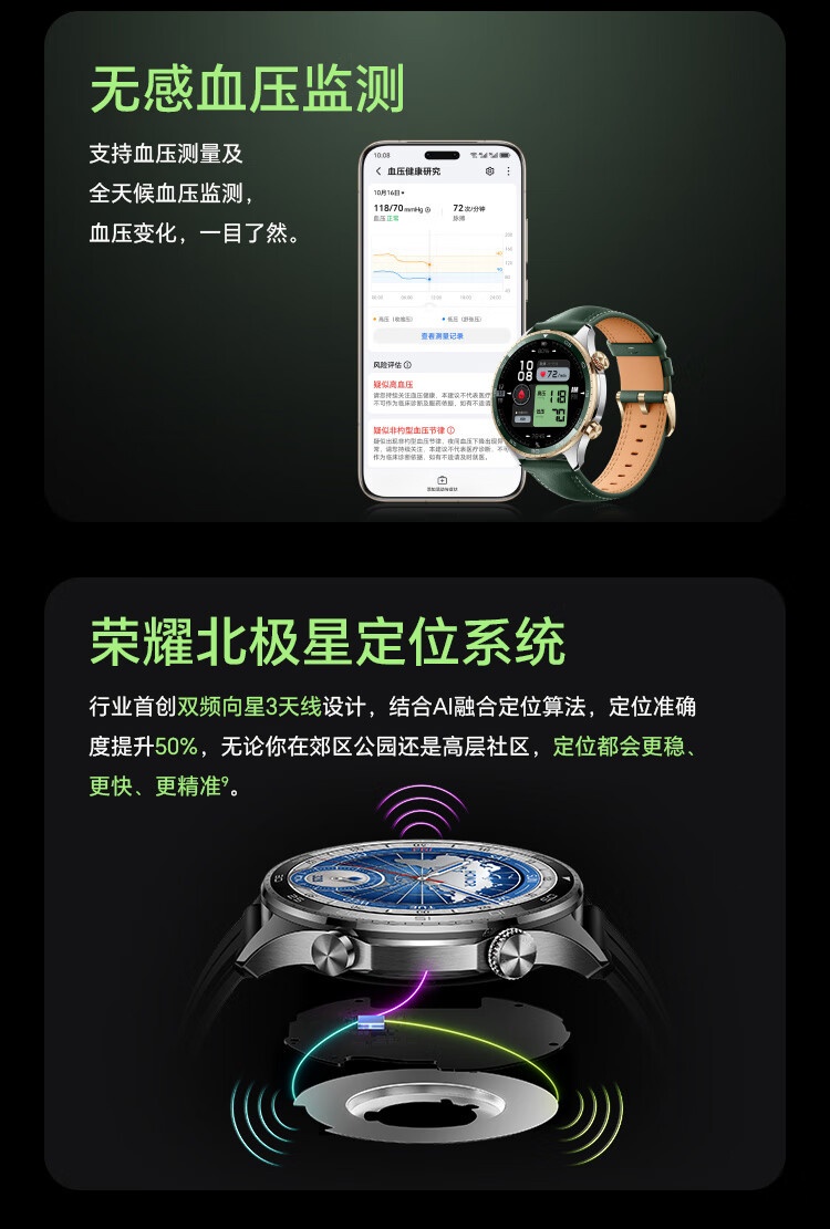 46mm 灰色智能运动手表无感血压心脏健康监测专业跑步 男女款