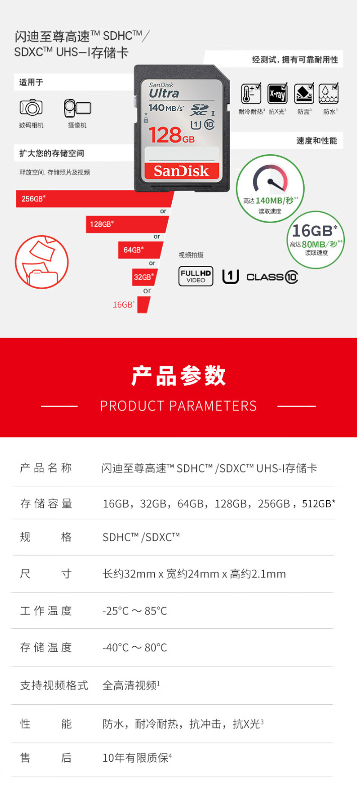 闪迪 32G SD卡 至尊高速 140MB/s