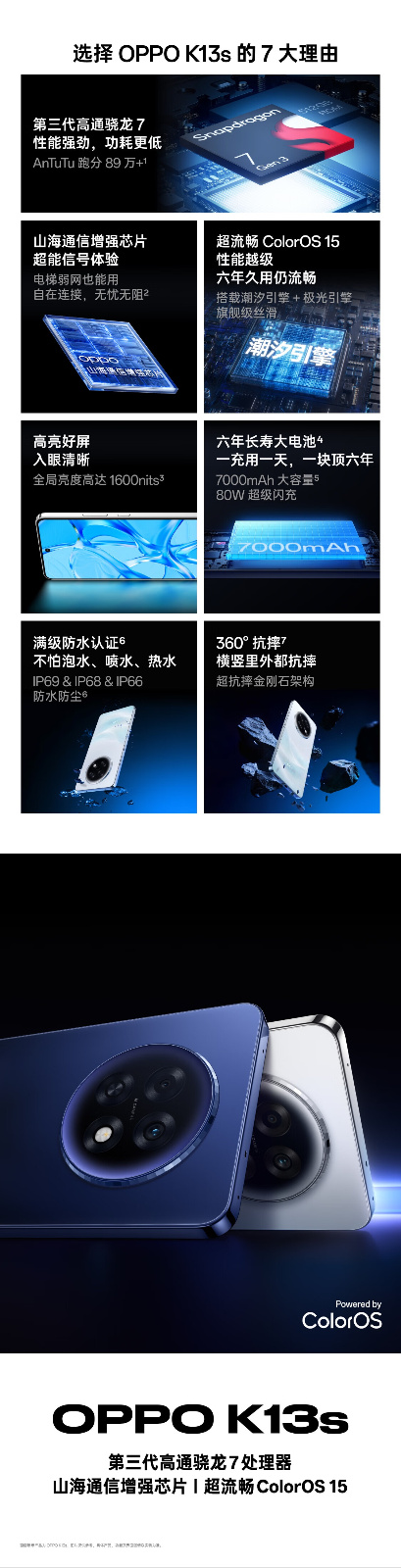 强悍更流畅 第三代骁龙7 抗摔耐磨 防水防尘