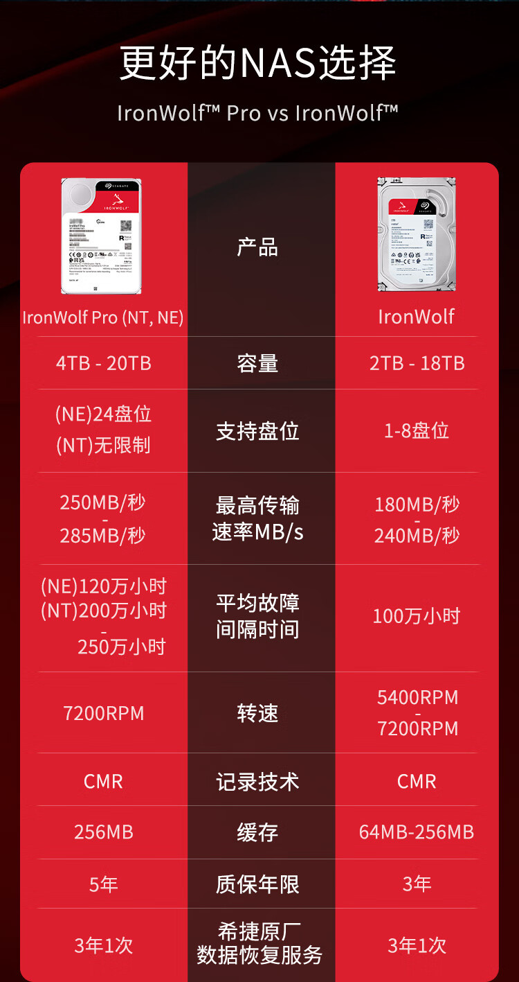 NAS硬盘 酷狼PRO 新NT系列 网络存储硬盘 CMR垂直磁记录垂直硬盘机械硬盘
