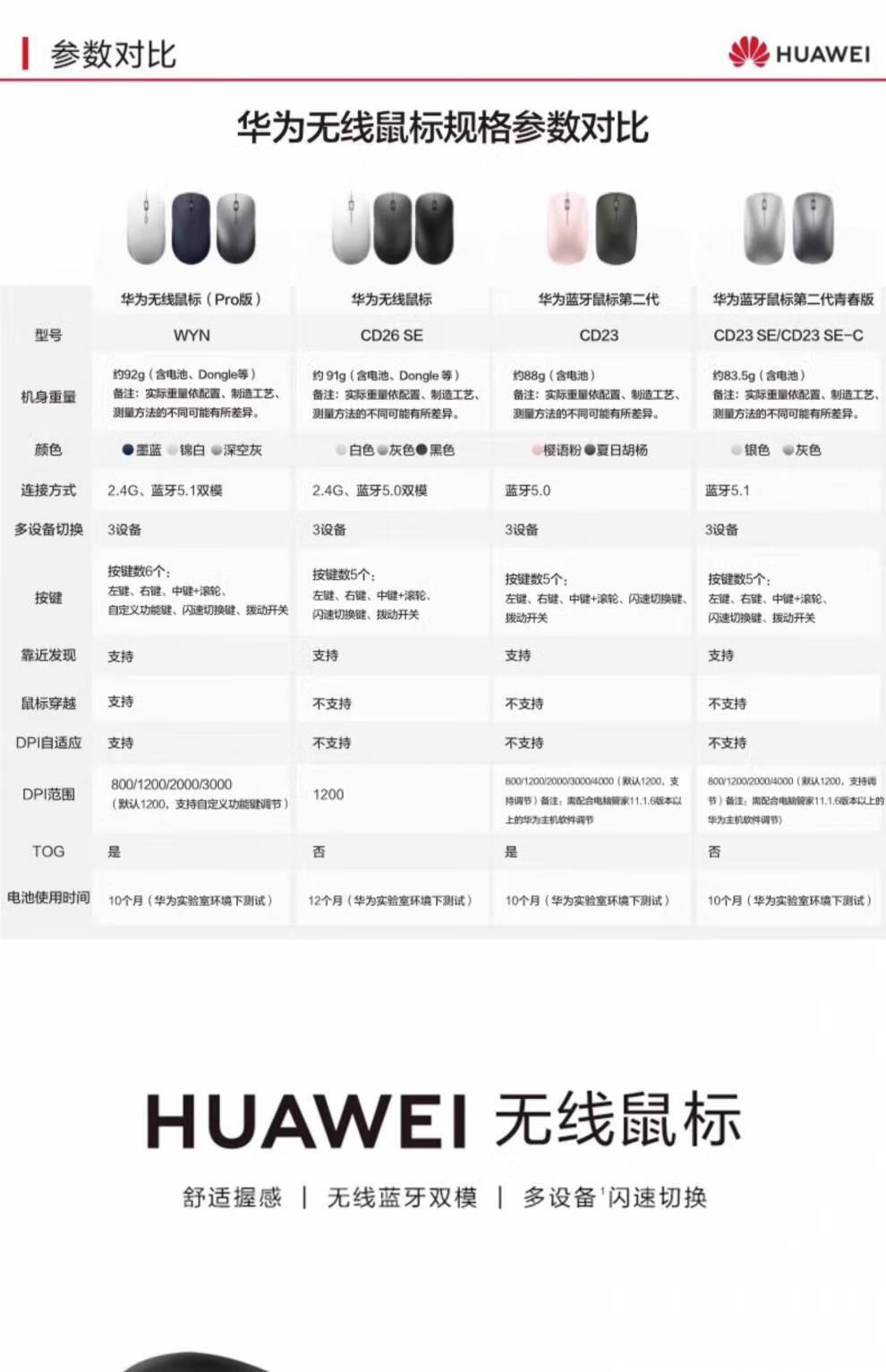 华为 原装无线蓝牙鼠标第二代 青春版 CD23 SE(C) 白色