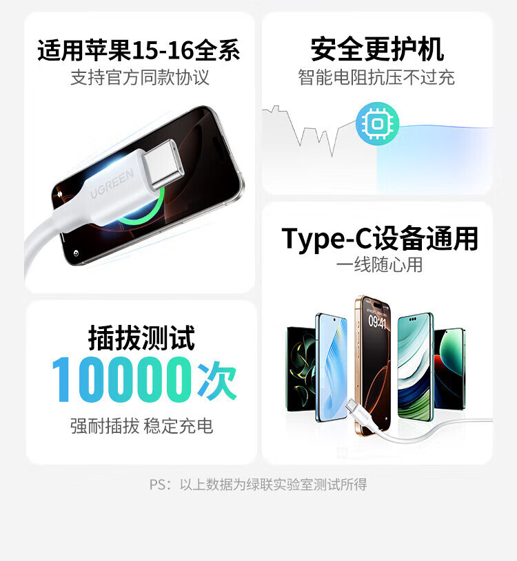 苹果16/15充电线Type-C数据线3A线USB-C车载Carplay适用iPhone16/15华为荣耀手机 USB转typec数据线黑色