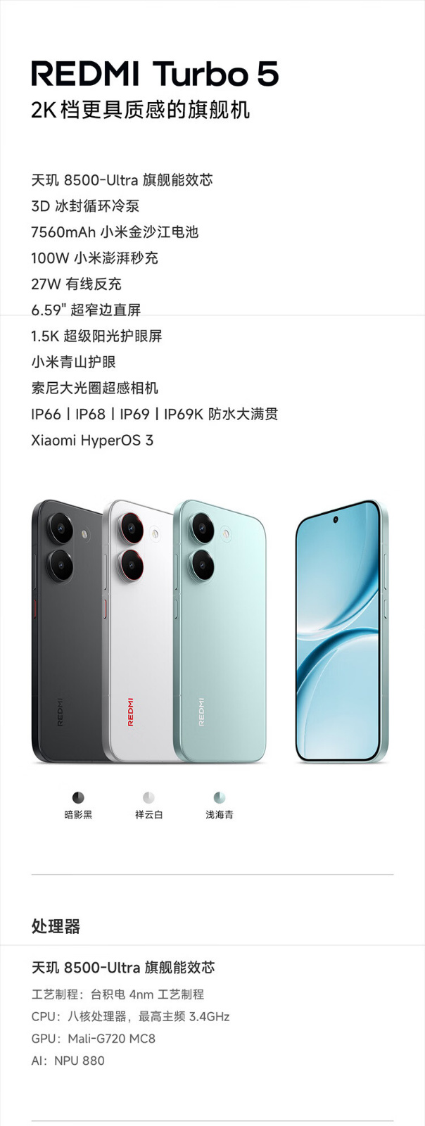 天玑8500-Ultra 1.5K阳光屏 6.59"黄金尺寸