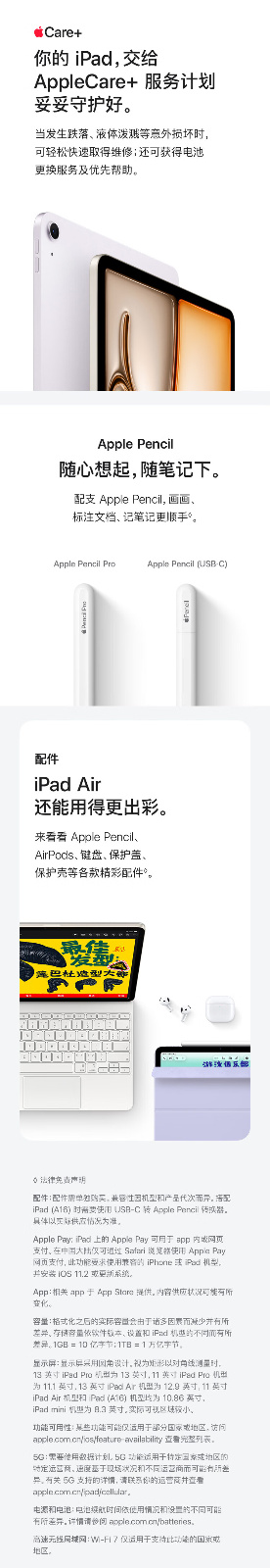 Apple iPad Air8 2026 11英寸 M4芯片 eSIM版 256G 紫色