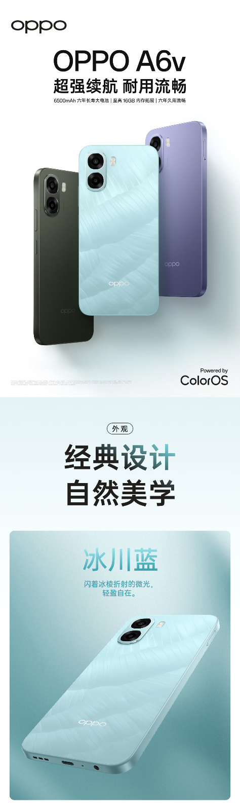 OPPO A6v 8G+256G 冰川蓝