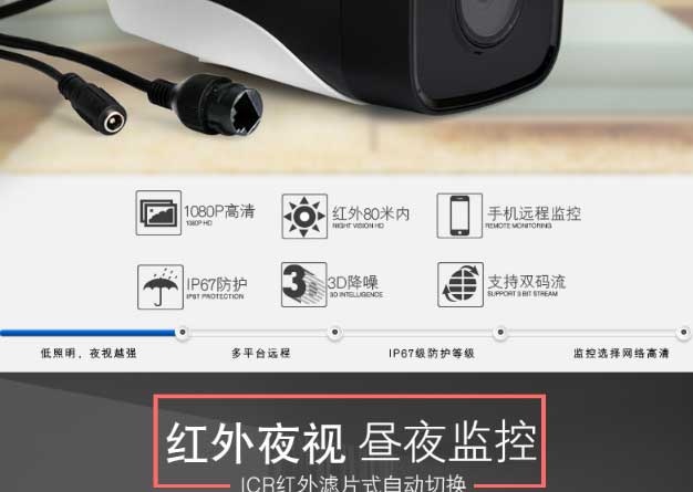 200万高清双灯红外防水枪机 支持云存储 手机远程监控