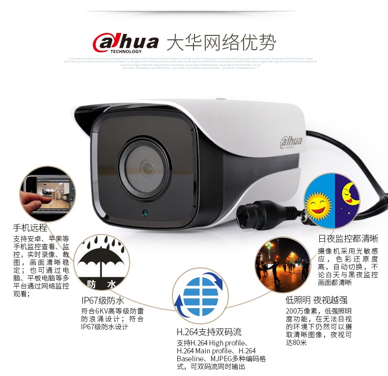 200万高清双灯红外防水枪机 支持云存储 手机远程监控