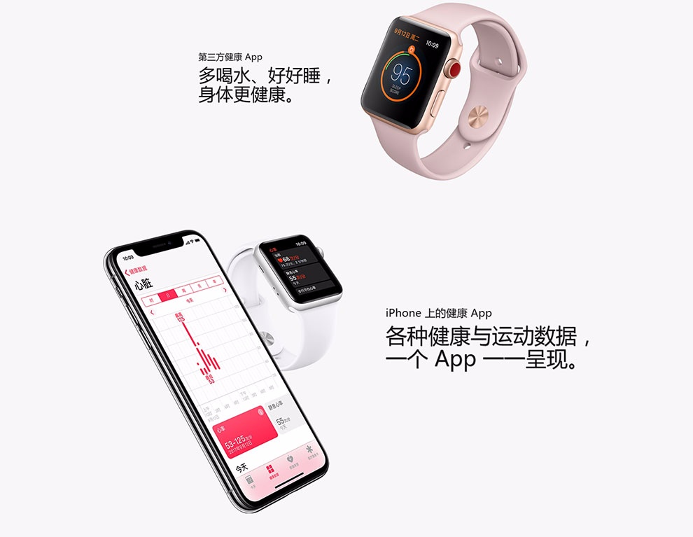| 其它功能 | Siri人机交互,定频震动功能。 Digital Touch 功能,精准计时,显示时间,卡路里。全方位的衡量运动监测,体育锻炼App。支持微信应用,健身功能应用,语音回短信,连接汽车,天气、航班信息, |