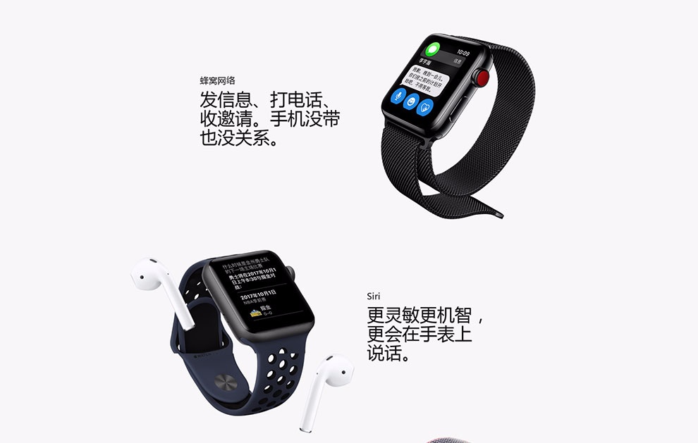 | 产品颜色 | 银色铝金属表壳搭配白金配黑色 Nike 运动表带 深空灰色铝金属表壳搭配煤黑配黑色 Nike 运动表带 |