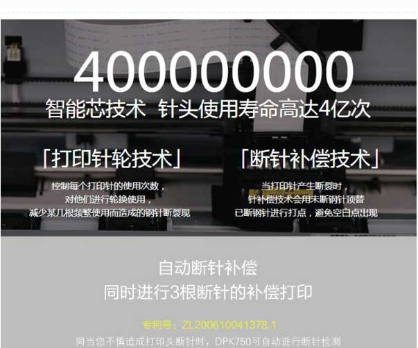 | 其它特性 | 自动压缩打印功能 页面压缩打印功能 FLASHROM在线升级功能 新一代断针补偿打印功能(专利) 打印参数智能设置功能(专利) |