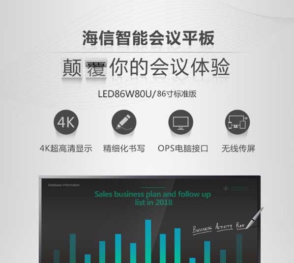 海信86英寸会议平板,红外触摸。无线传屏,安卓系统,4K高清显示,带传屏保