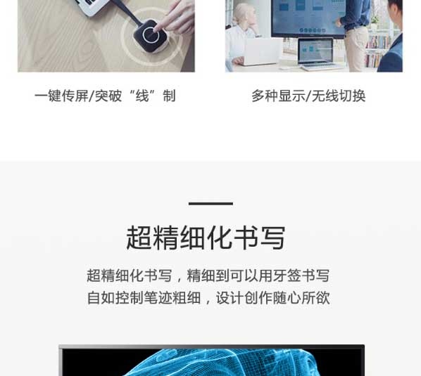| 包装清单 | 产品说明书、触控笔(粗)*2、触控笔(细)*2、音视频转接线、遥控发射器、无线传屏宝、壁挂支架 |