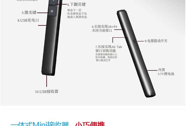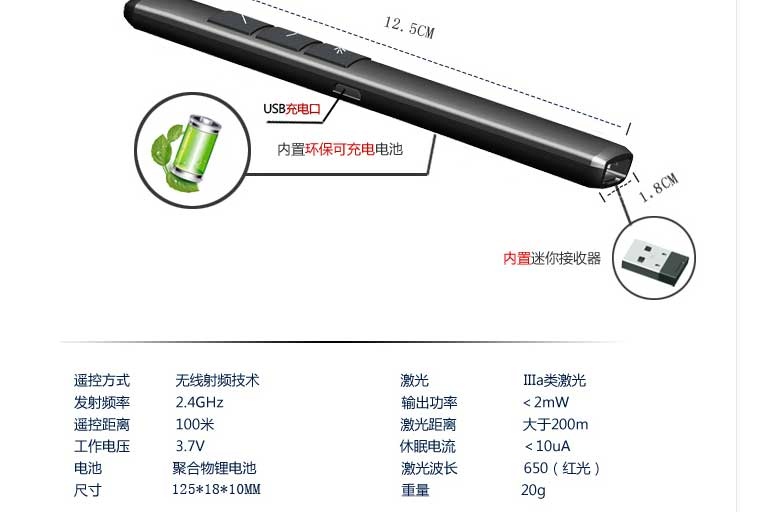 充电锂电激光笔,翻页笔 mini接收器, 电子教鞭,超链接