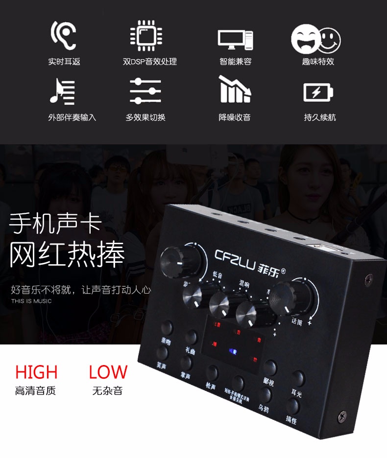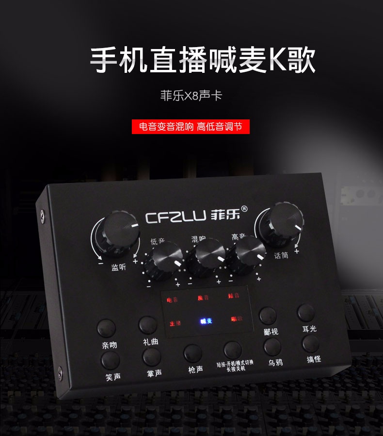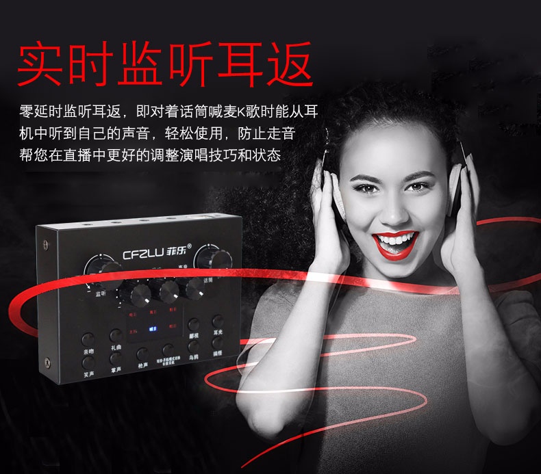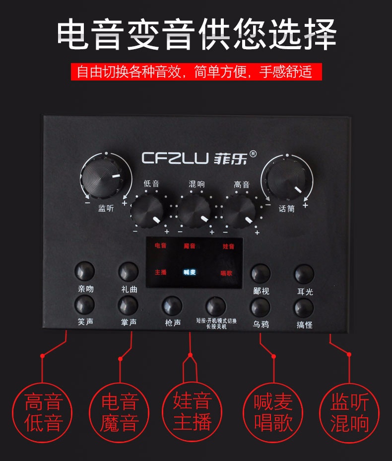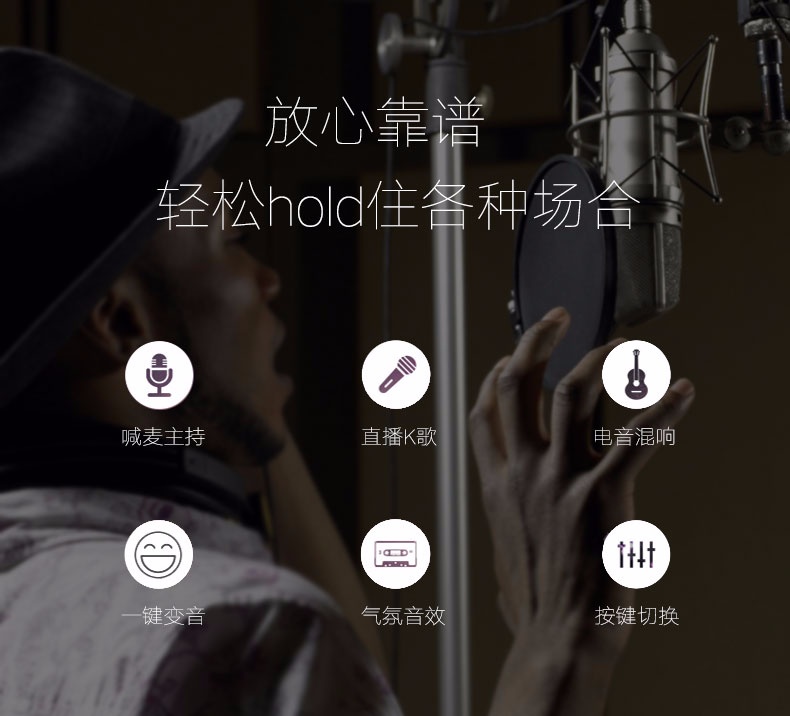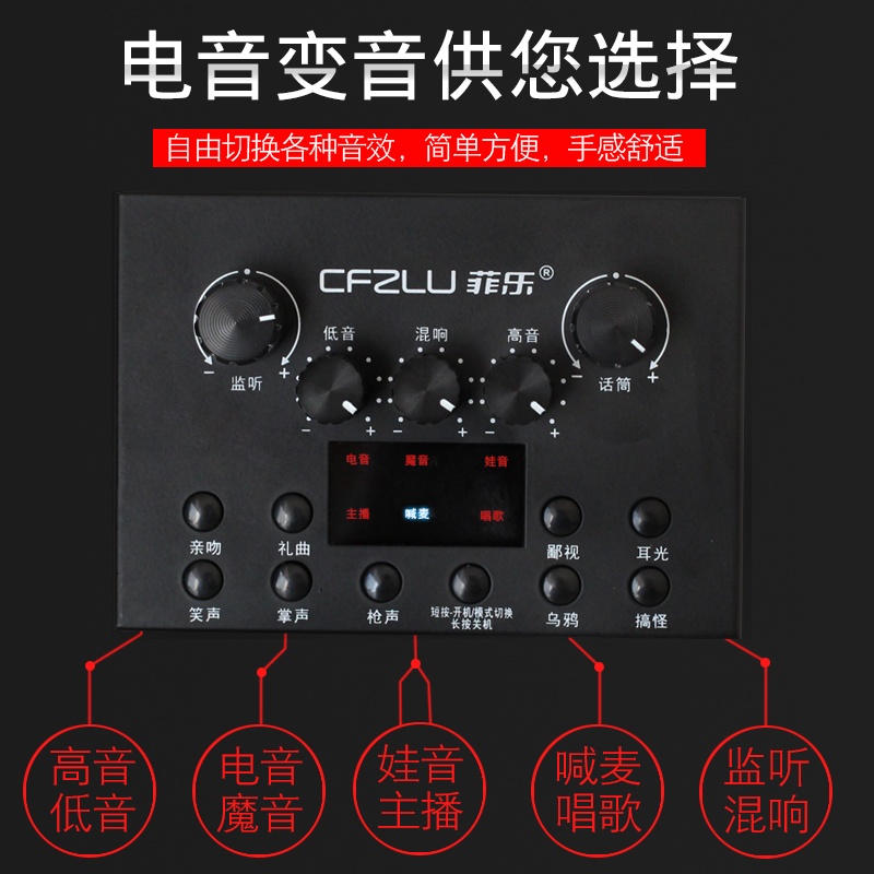 手机主播喊麦专用声卡,手机直播K歌,实时监听耳返,适应多平台、多设备,自由切换各种音效,简单方便。